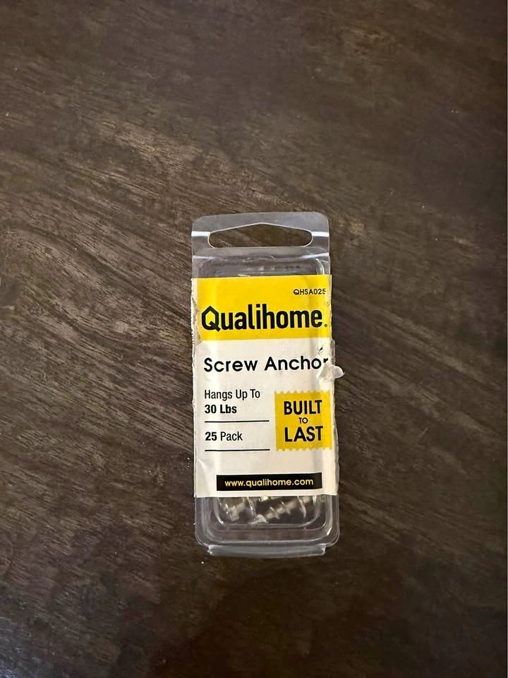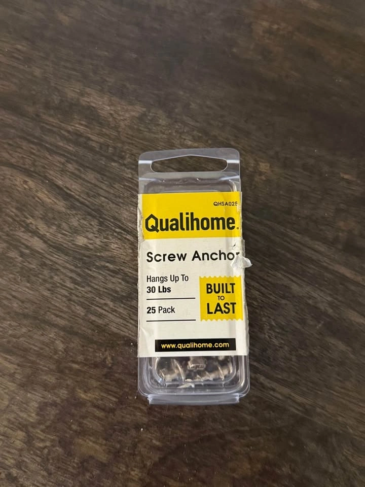 Sturdy metal screw-in drywall anchors from Qualihome. Designed to hang up to 30 lbs. Each anchor has a wide thread for a secure grip in drywall and a Phillips head for easy installation. 19 screws remaining in the pack.