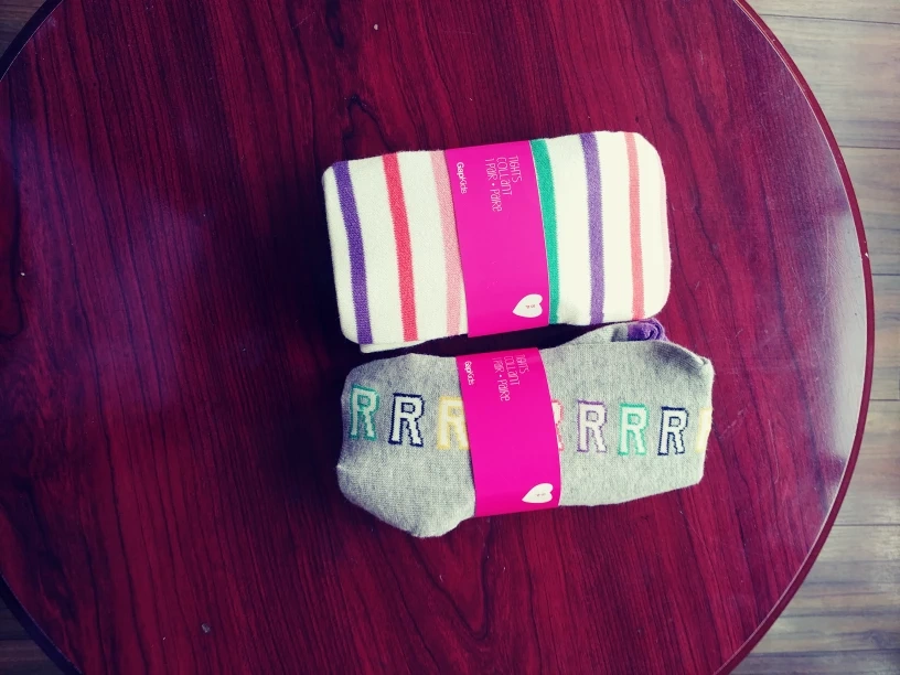 Selling a set of GapKids tights and socks. The tights have a cute striped pattern, and the socks feature the letters 'RRR'. Perfect for your little one!