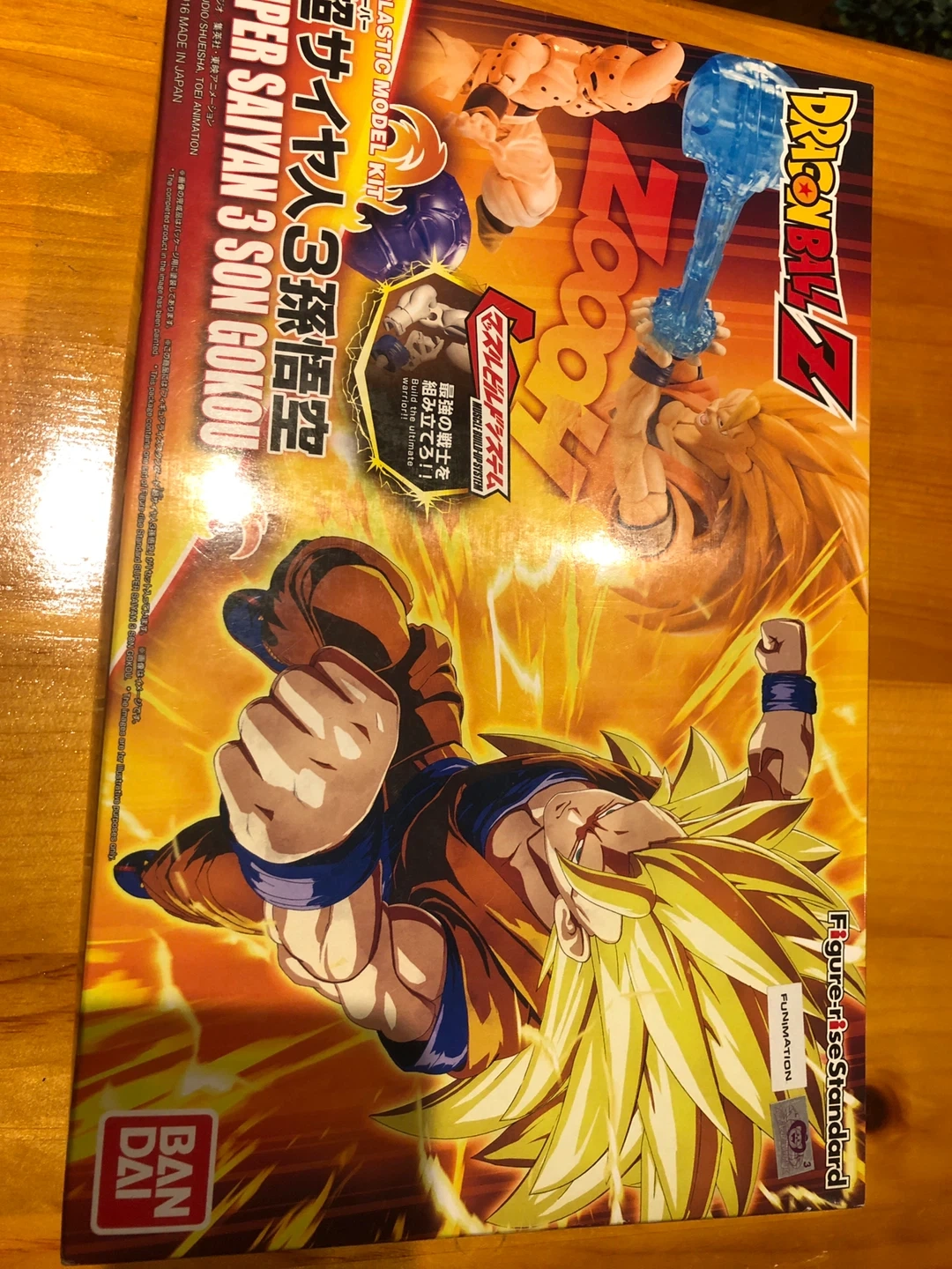 Selling a Dragon Ball Z Super Saiyan 3 Son Goku Figure-rise Standard model kit! It's a plastic model kit that you assemble yourself. The box has some cool images of the assembled figure and the different parts included