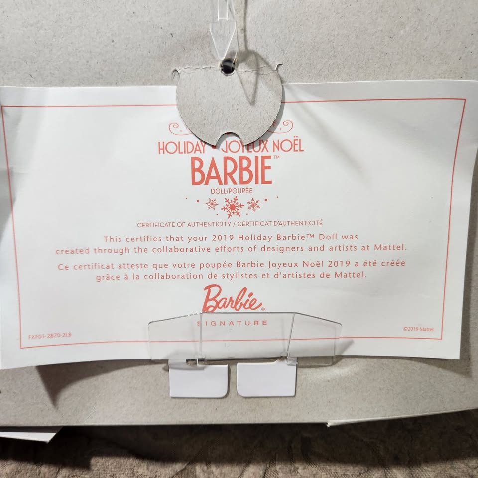 She is a Fashion Doll, looking exceptional in her beautiful dress. Barbie is in mint condition as she has never been removed from the cardboard. There is no box, just Barbie still attached to the original cardboard as can be seen in the picture.