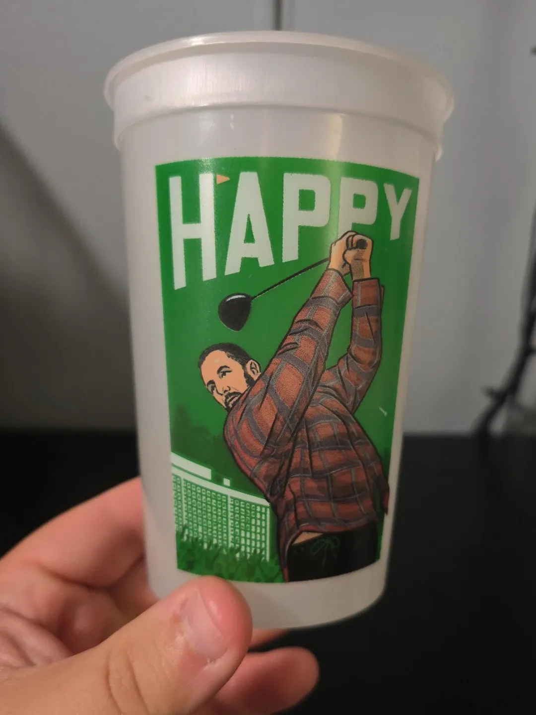 This is a promotional plastic cup from Subway featuring Happy Gilmore 2. It has the Subway logo and "Happy Gilmore 2" printed on it. The cup also shows "ONLY ON NETFLIX."