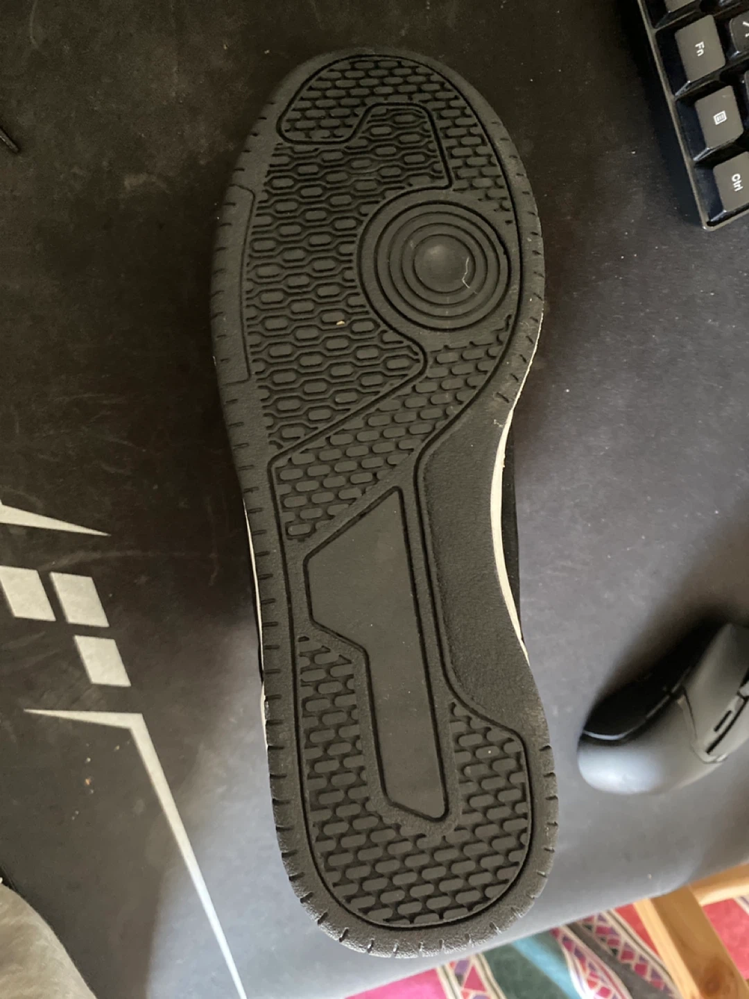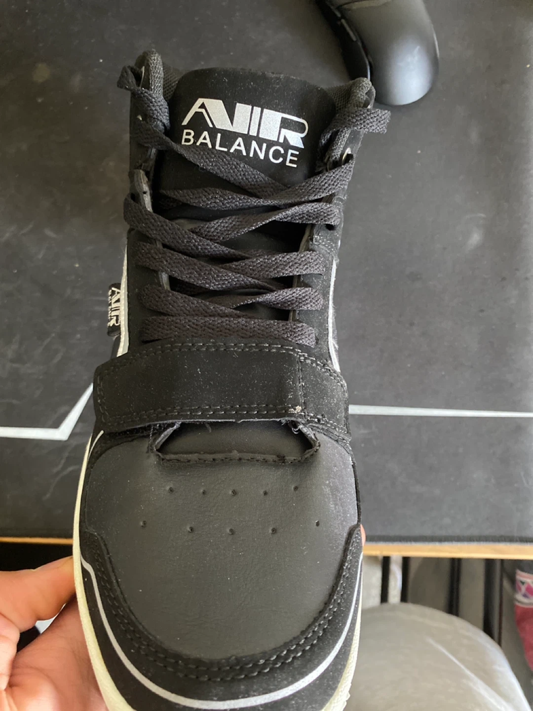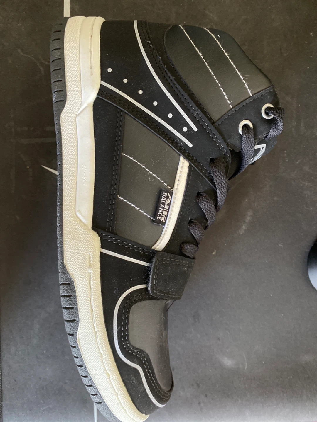 Selling a pair of Air Balance high-top sneakers! They're black with white accents and in great shape. Perfect for everyday wear or hitting the court! Never been worn.