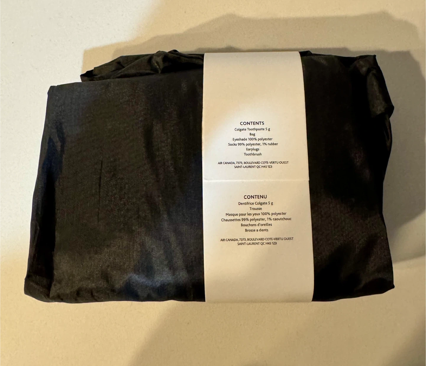 44✈️Air Canada Premium Economy Class Travel Essentials Kit - New✈️ Brand new Air Canada Travel Essentials kit! This kit includes: - Colgate toothpaste 5 g - Bag - Eyeshade (100% polyester) - Socks (99% polyester, 1% rubber) - Earplugs - Toothbrush