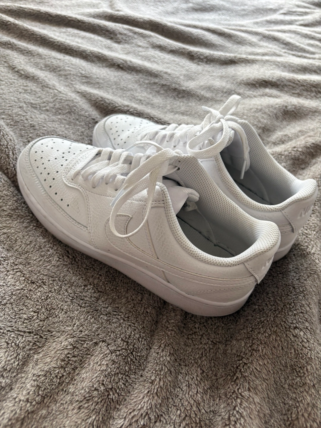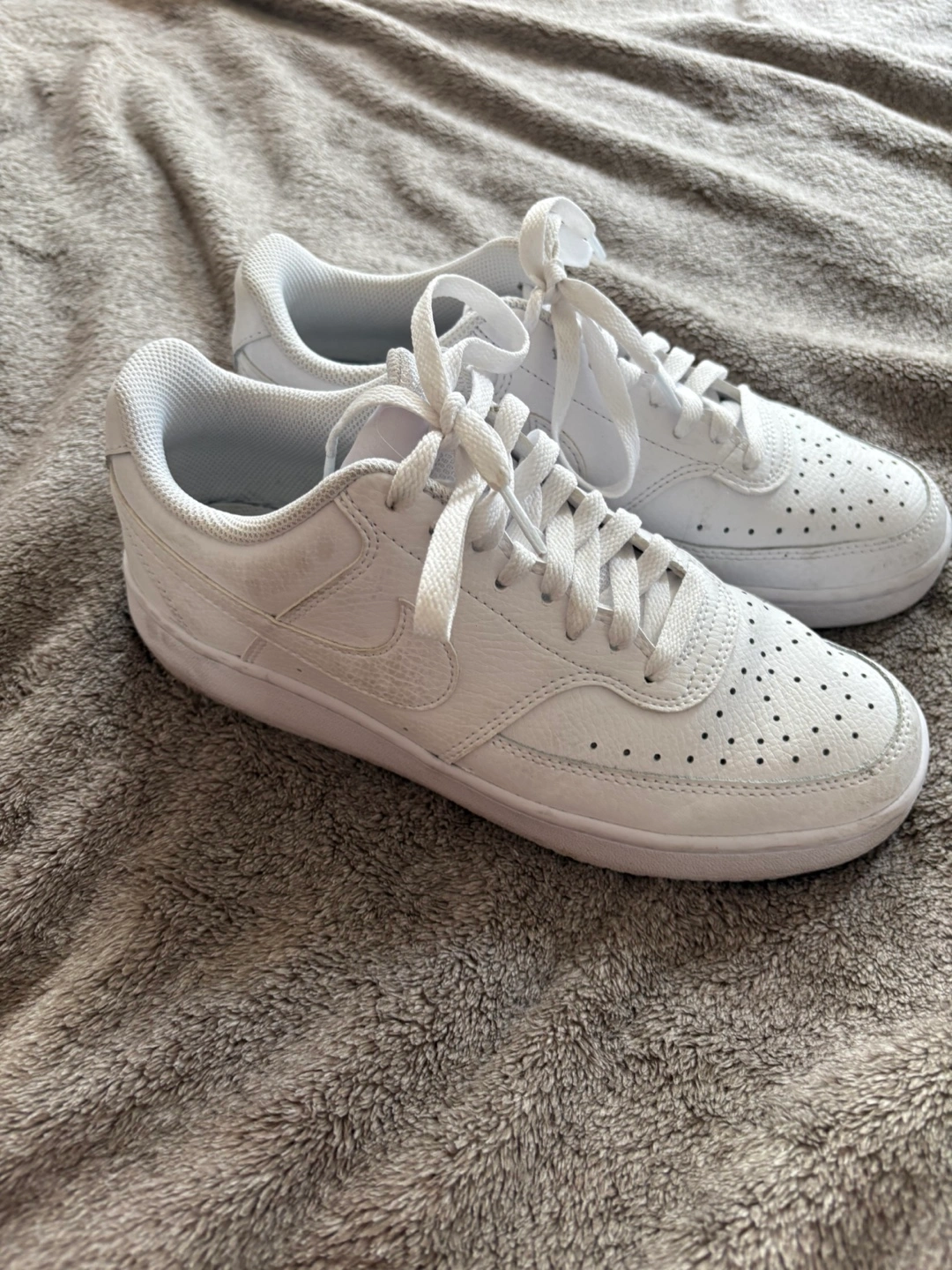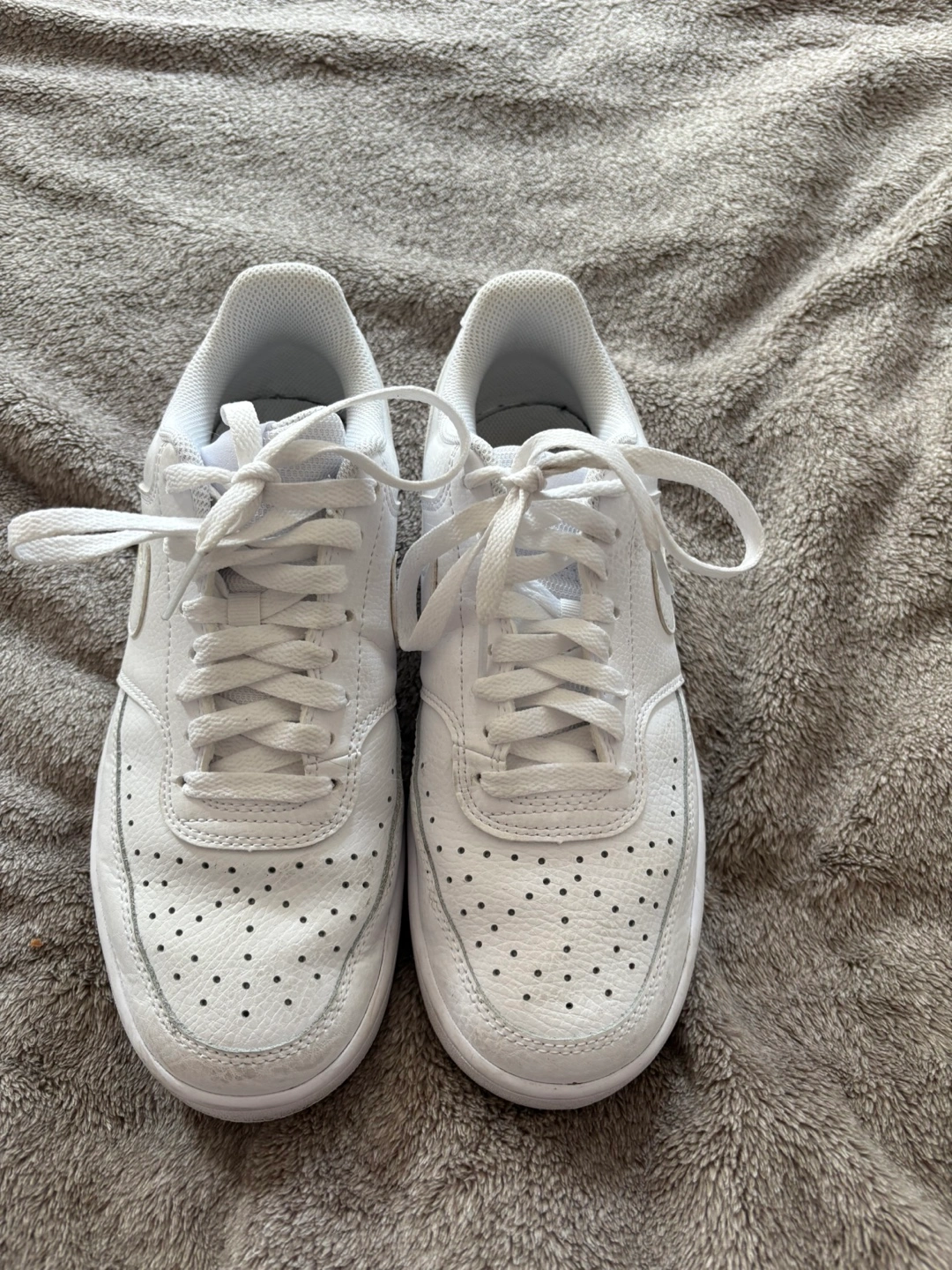 Size 8.5 women’s airforces Barely worn but there are some minor scuffs