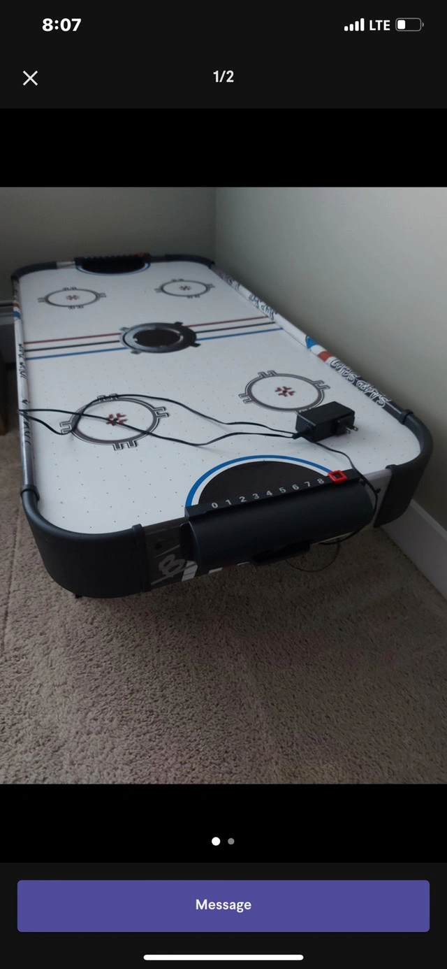 Get ready for fast-paced fun with this used air hockey table, perfect for game nights! It features a smooth playing surface and a strong fan for great puck action. This table is in good working condition, ready to bring hours of entertainment to your home. Key Features: * Durable construction for long-lasting use * Electronic scoring system to keep track of the game * Includes pucks and strikers I'm looking to sell it for around $150, which is a fair price compared to what I've seen similar tables go for on Kijiji. If you're seeing this ad, the air hockey table is still up for grabs β ready to bring some high-speed excitement to its new home!