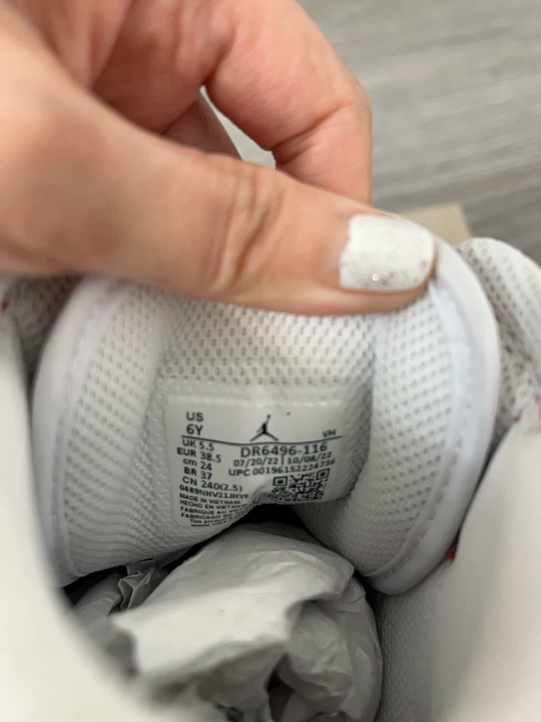 152Air Jordan 1 High in the Chicago colourway. Features the classic red and white design. Great for any sneakerhead! US UK EURO 6Y 5.5. 38.5 Only wear once