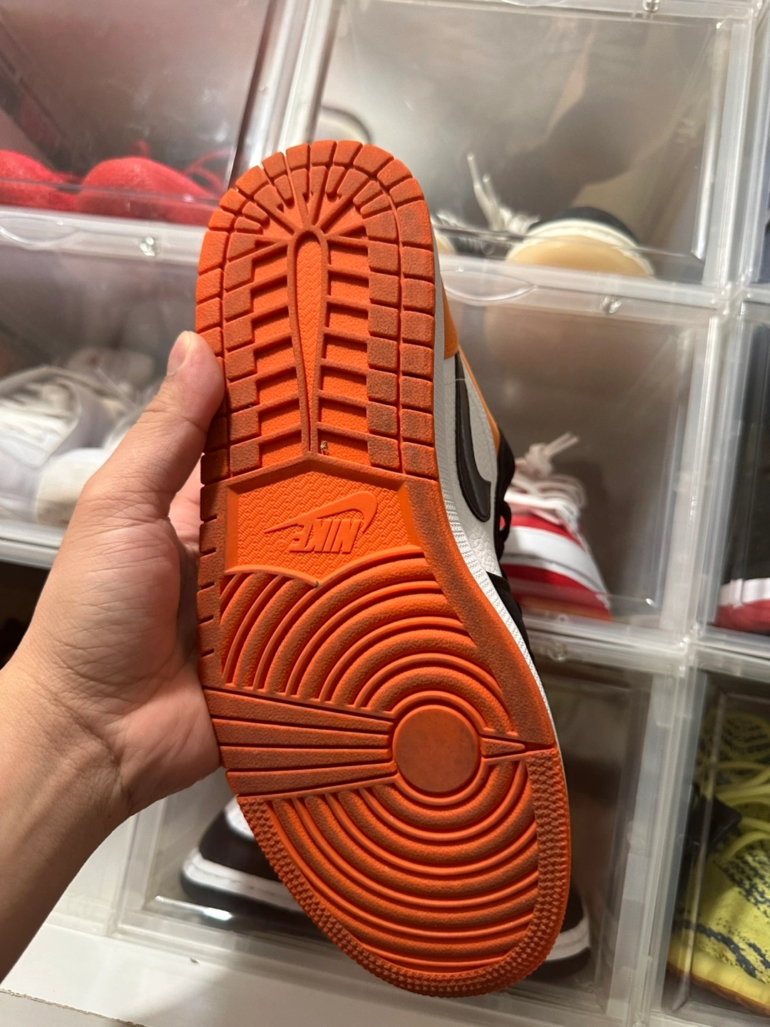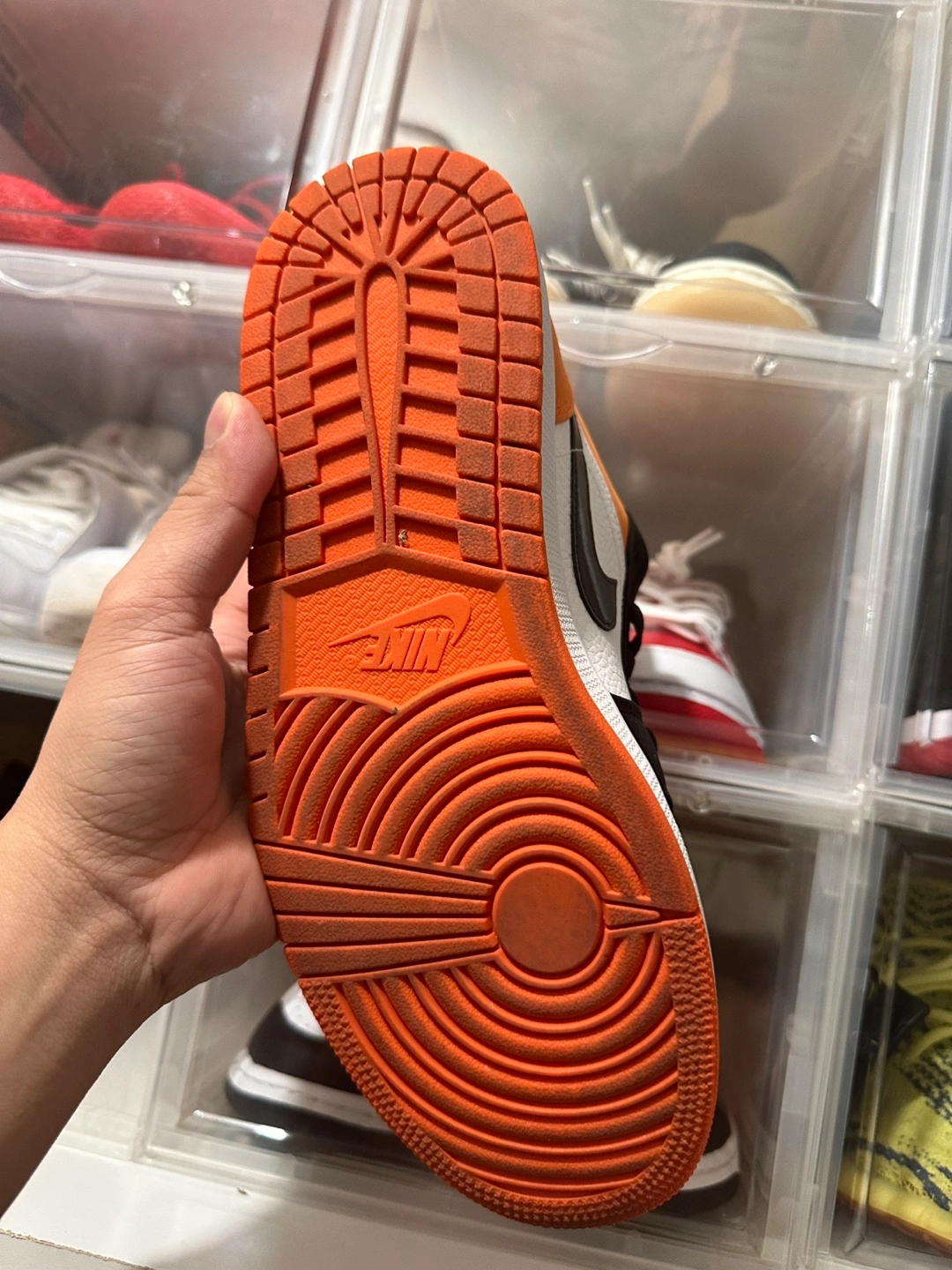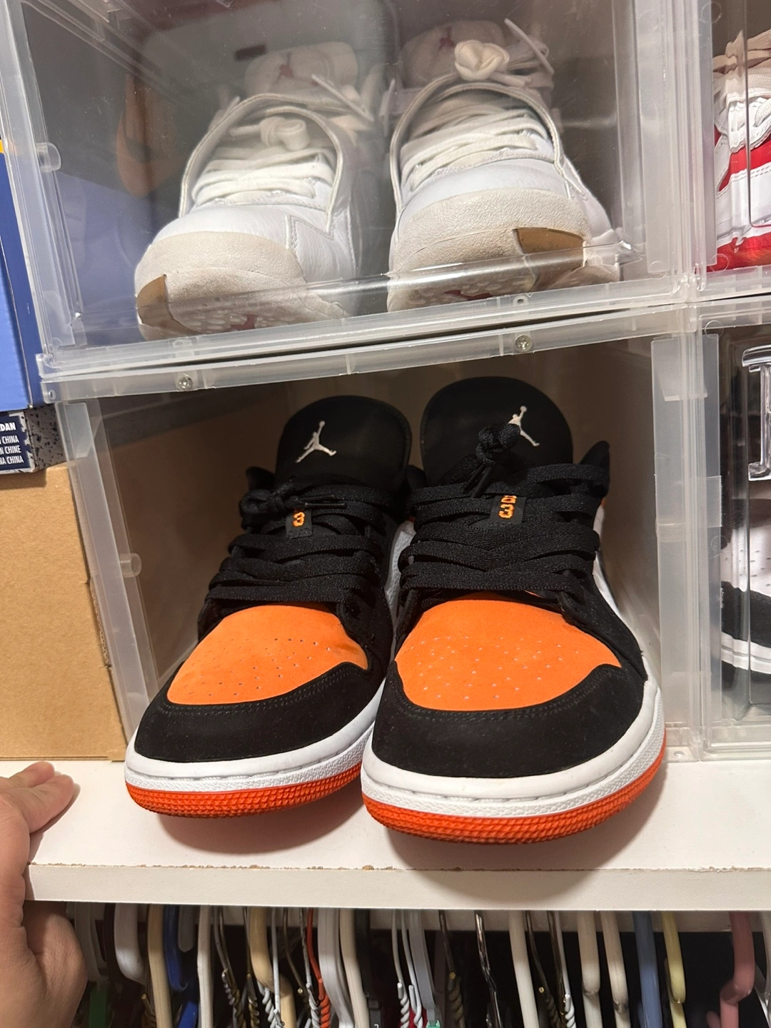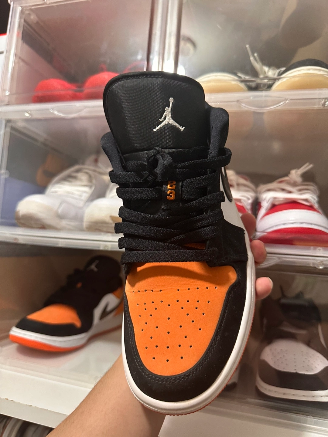 10Air Jordan 1 Low 'Shadow' in size 9.5. Black, orange, and white colourway. Worn but in good condition.