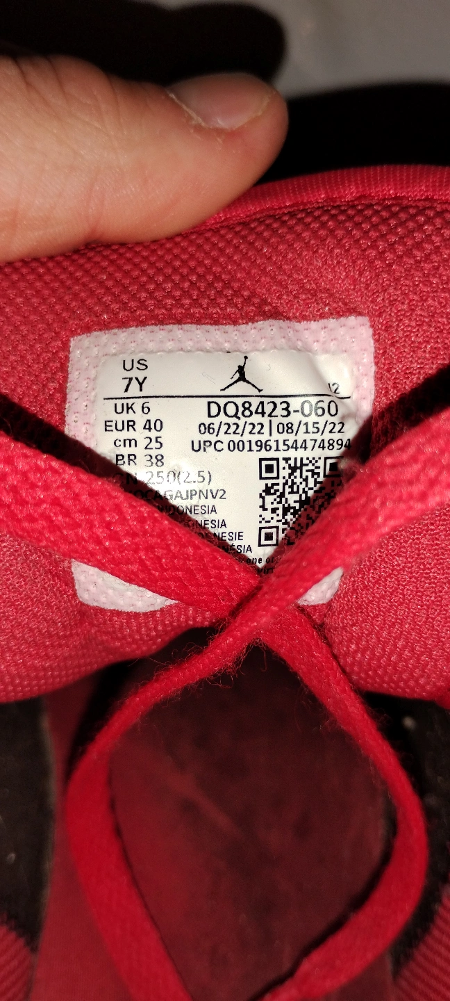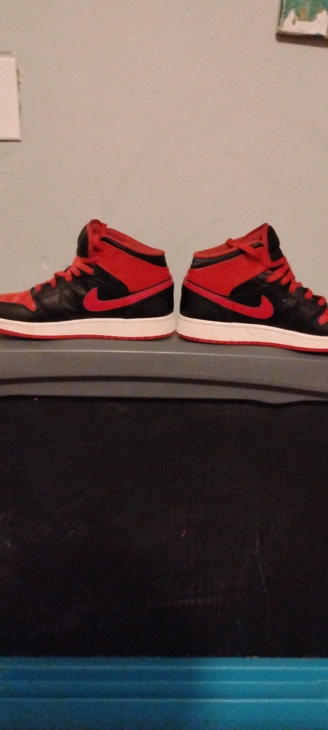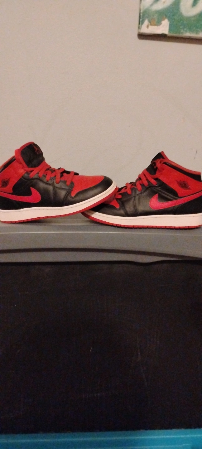 15Pair of Air Jordan 1 Mid sneakers. Black and red colourway. Size 7Y.