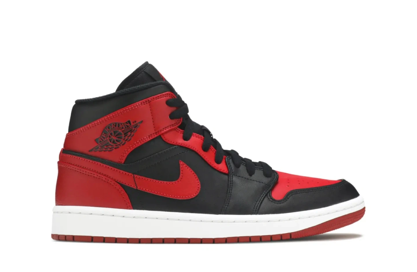 60Selling a pair of Air Jordan 1 Mid sneakers in the classic black and red colourway! These shoes are a stylish addition to any wardrobe and offer a comfortable fit. Great for everyday wear or for hitting the basketball court Size 6.5 women 5 kids