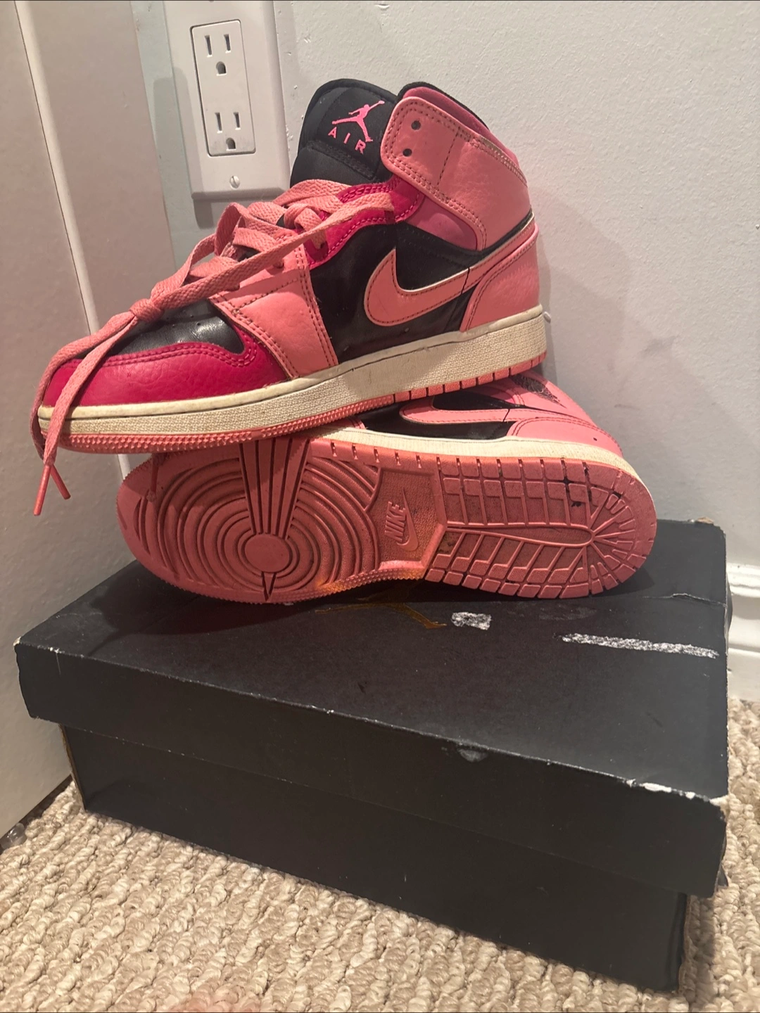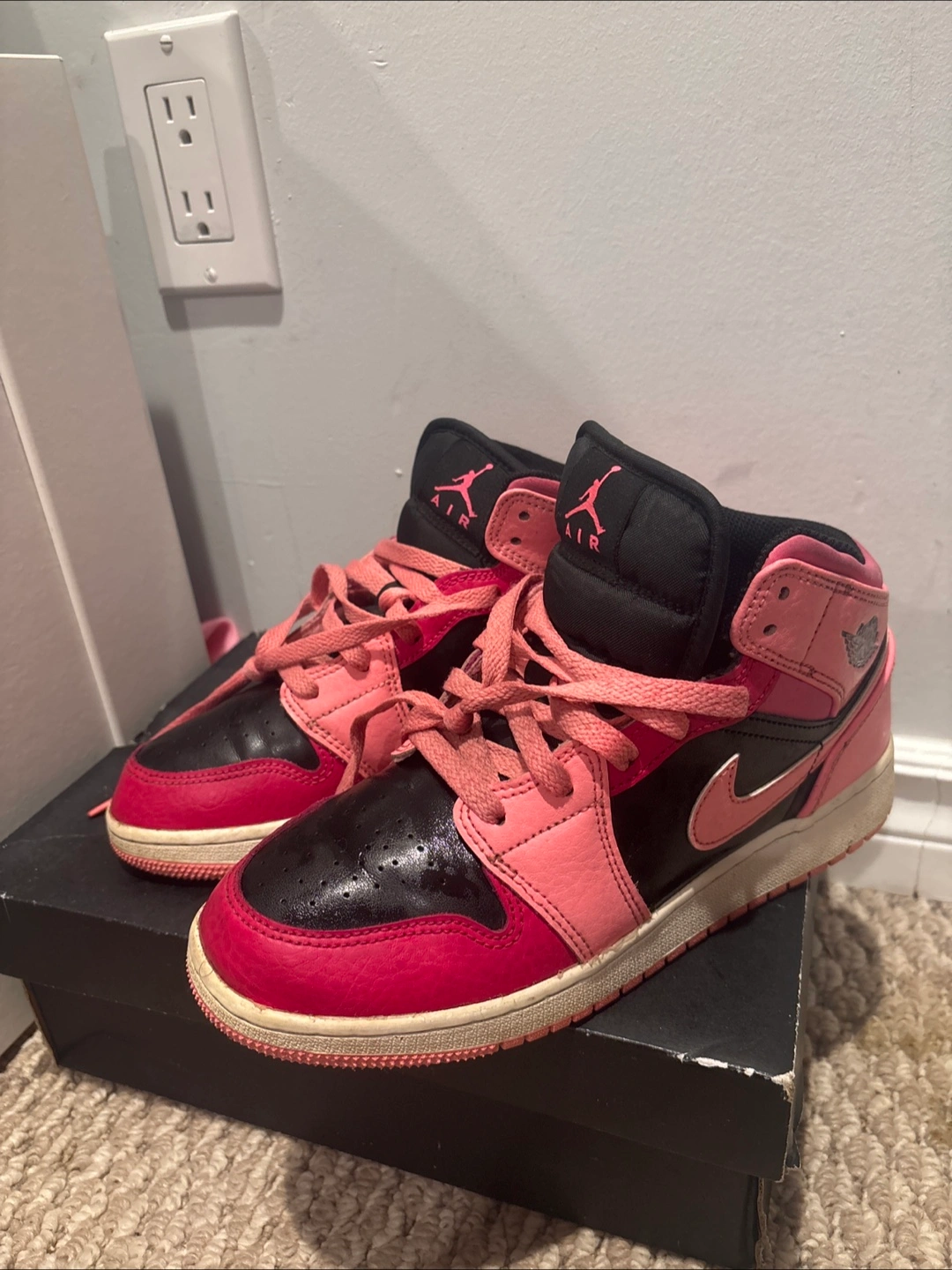 20Selling a pair of Air Jordan 1 Mid sneakers in pink and black side Us: 5.5y Eur:38 Br:36 Cn:240.(2.5) Disclaimer⚠️⚠️⚠️⚠️: comes with box