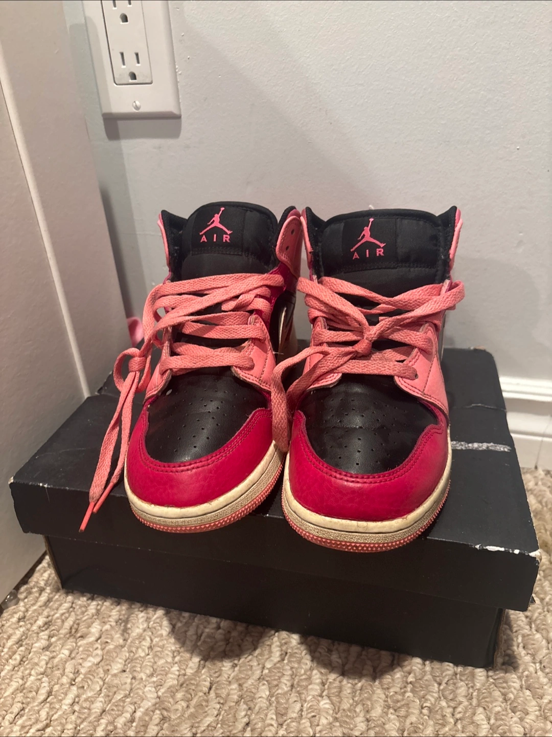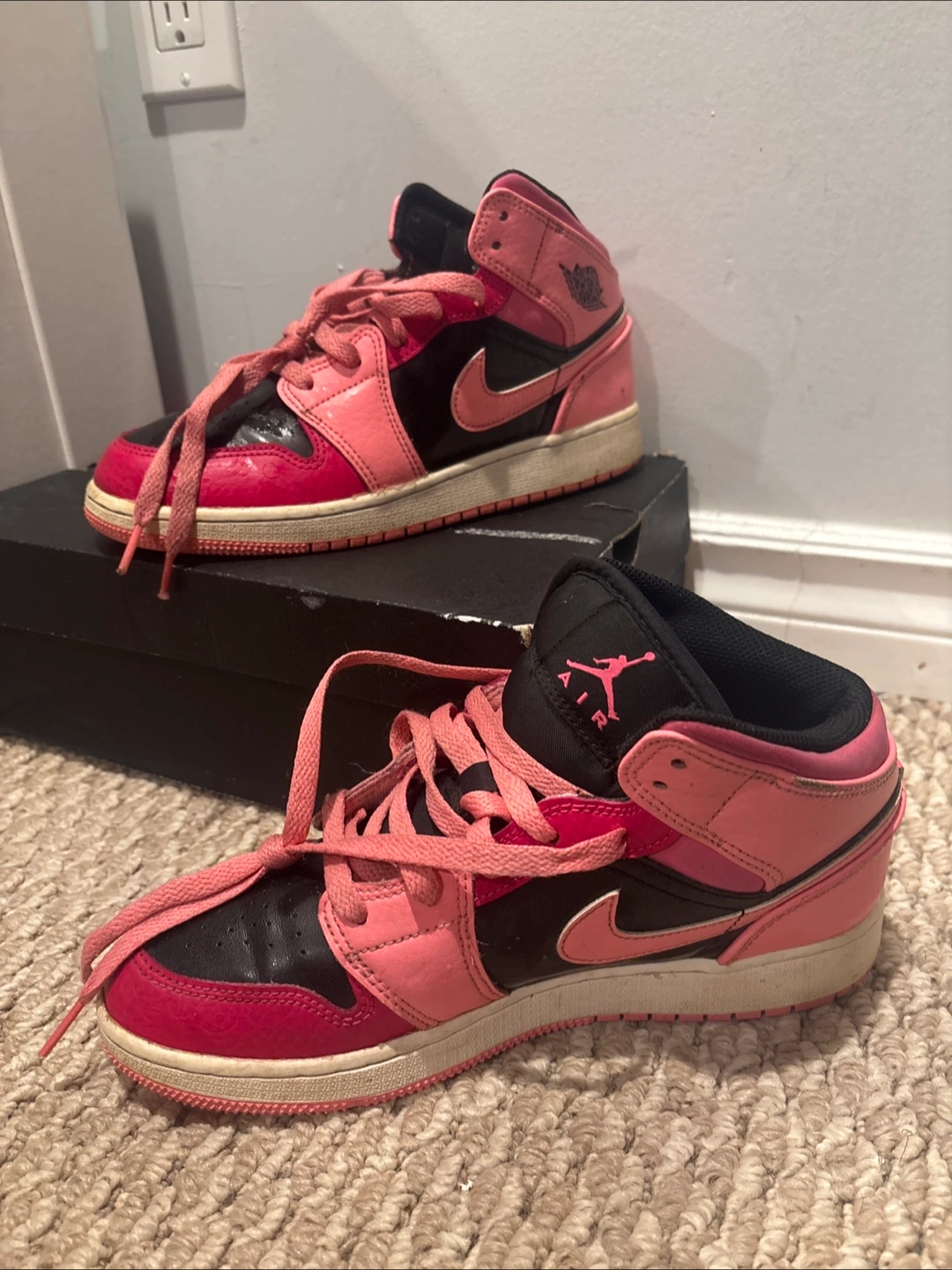 Air Jordan 1 Mid Pink Black Kids Size 13