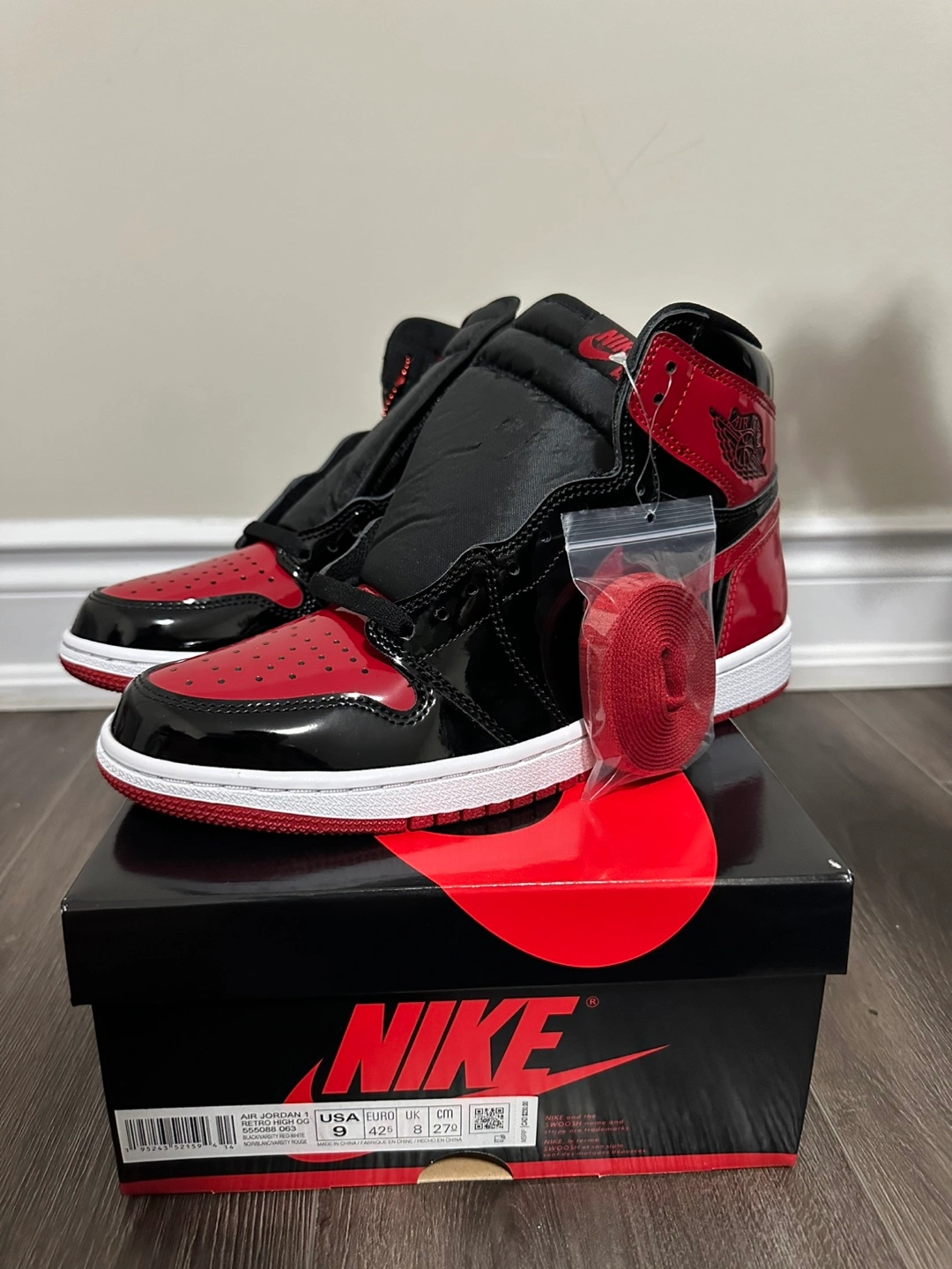 10Black and red patent leather. Comes with original box. Opem trade for jordan 3 black cat same size