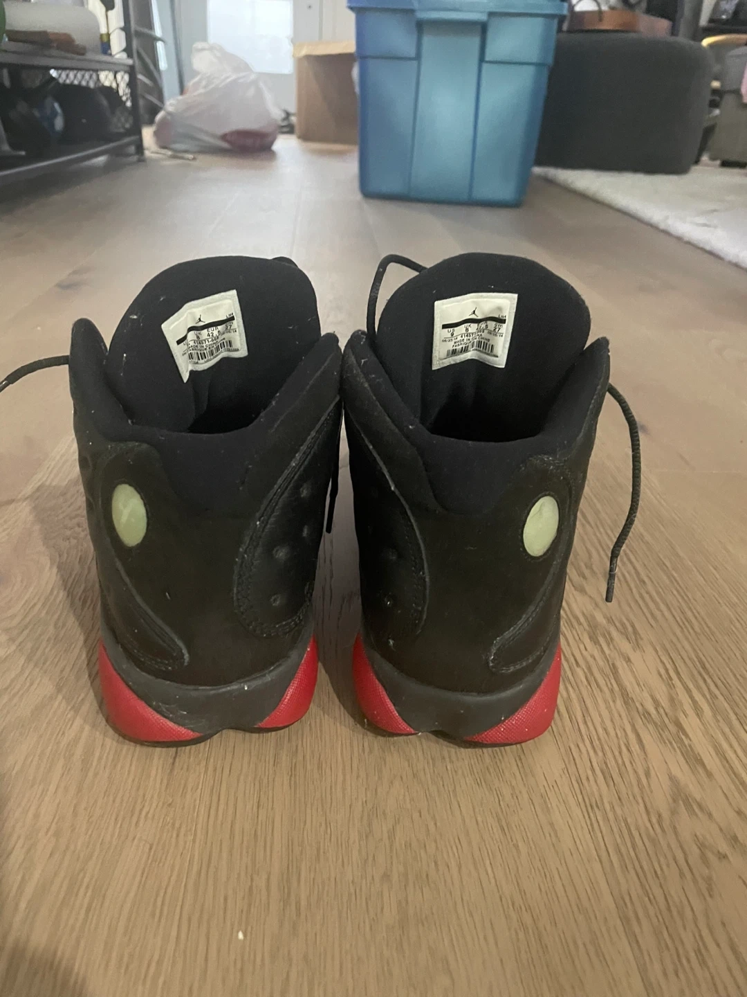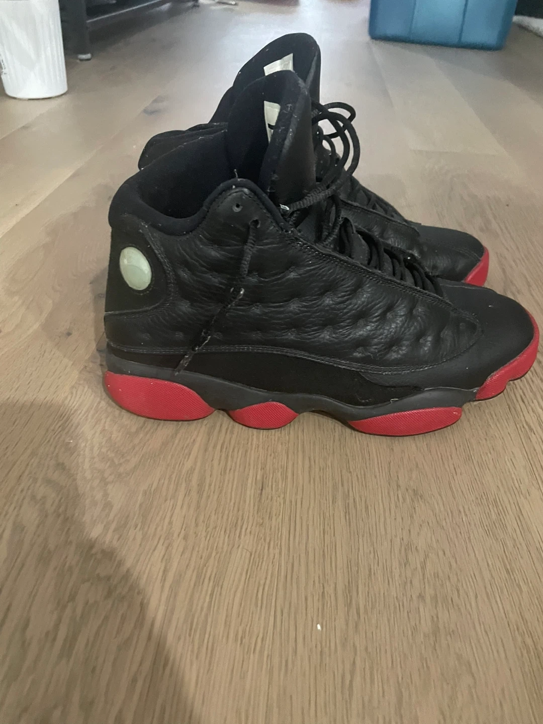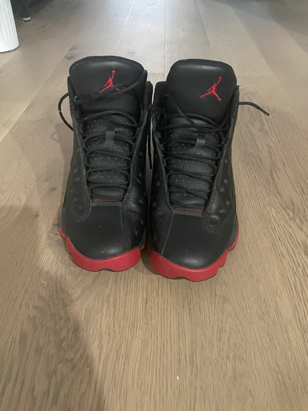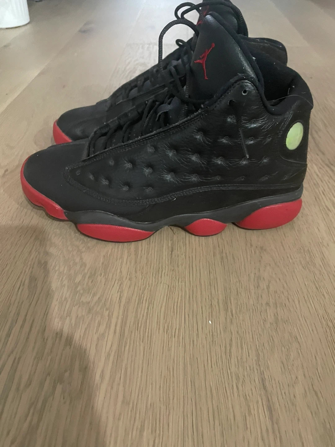 65Selling a pair of Air Jordan 13 Retro sneakers in black and red. They're in good condition and ready for a new home!