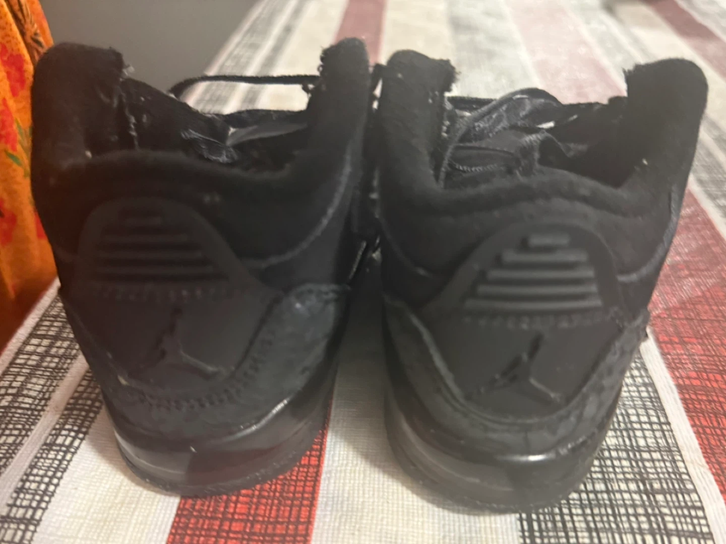 Selling a pair of Air Jordan 3 Retro in black. They show some signs of wear but are still in good condition. Please see the photos for details!