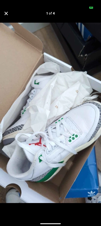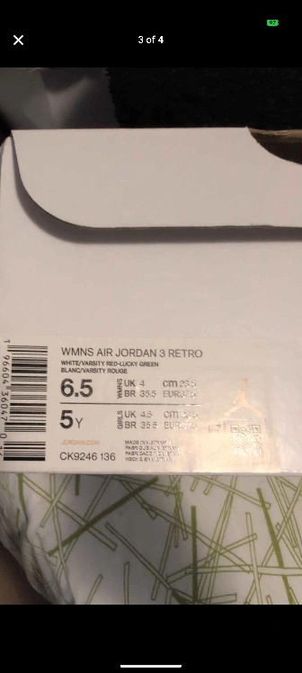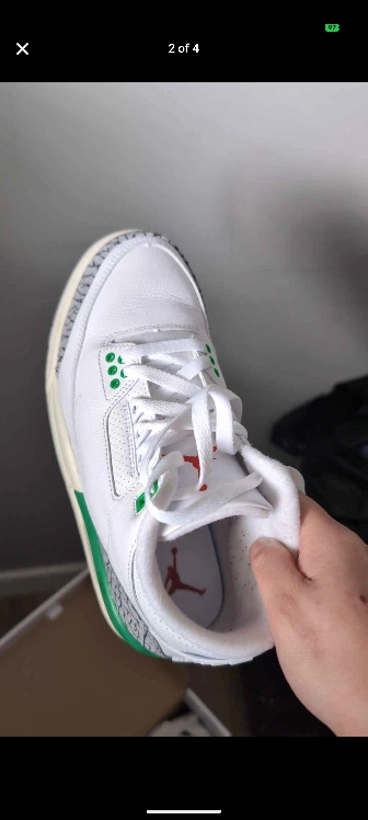 Selling a pair of Air Jordan 3 Retro sneakers in the White/Varsity Red-Lucky Green colourway! They are a US size 6.5. Box is included WANT THIS GONE AS I AM NO LONGER KNTERESTED IN USING LT WEARING IT. PRICE IS FIRM