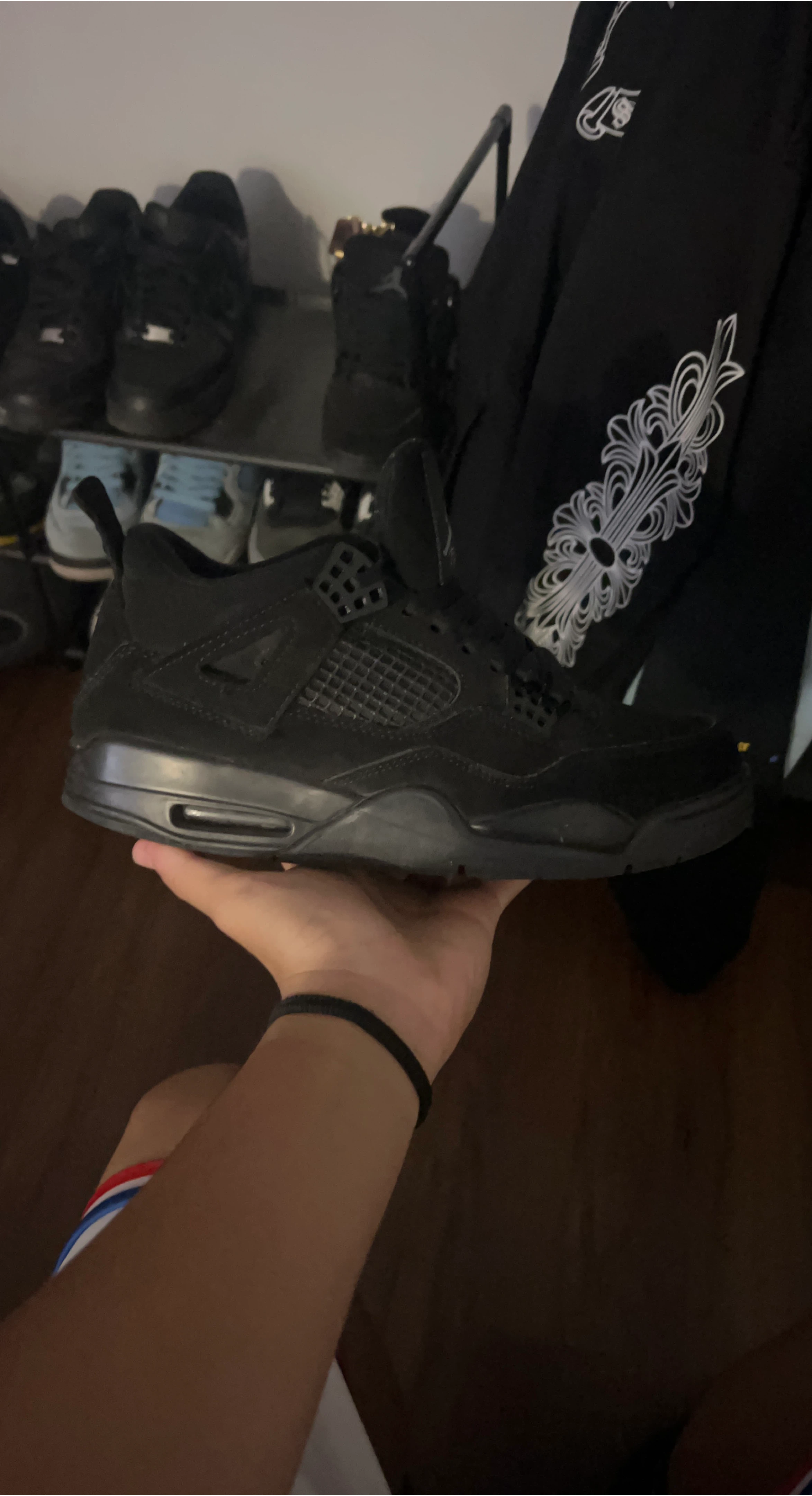 13Selling a pair of Air Jordan 4 Retro in the popular Black Cat colourway. These are in used condition, with some signs of wear, but still have plenty of life left. A classic and stylish shoe!