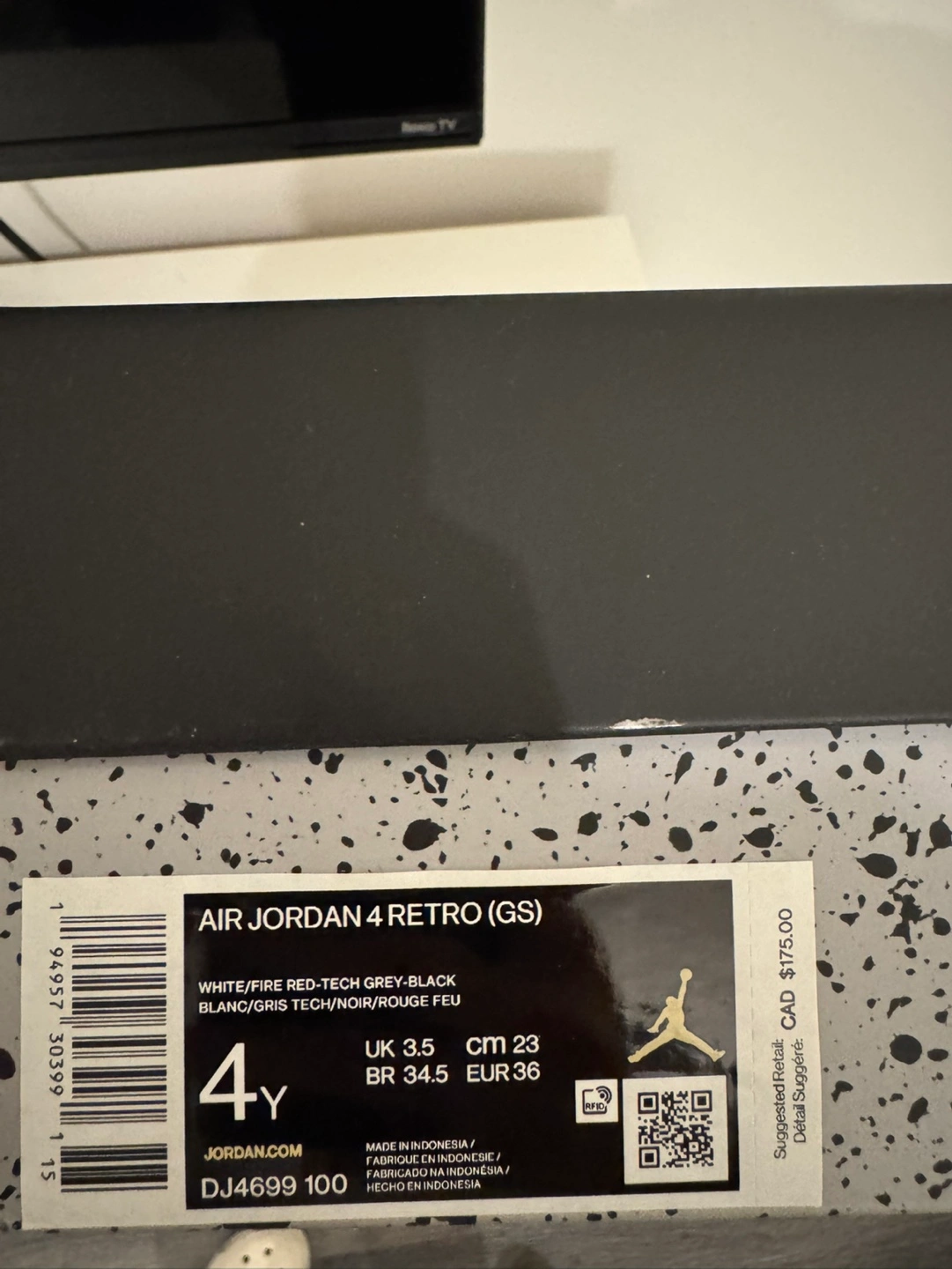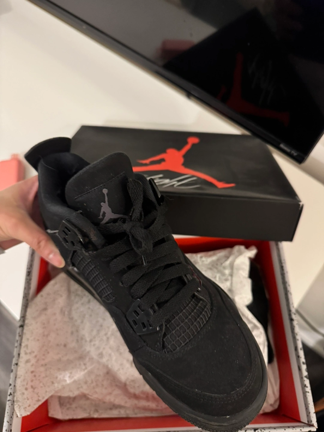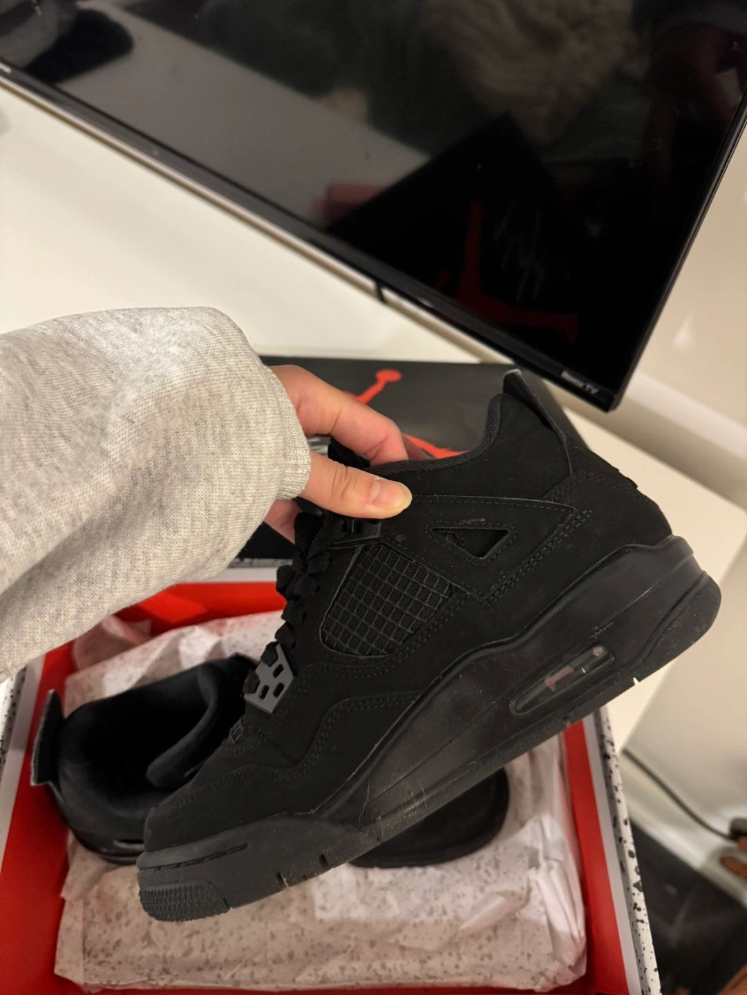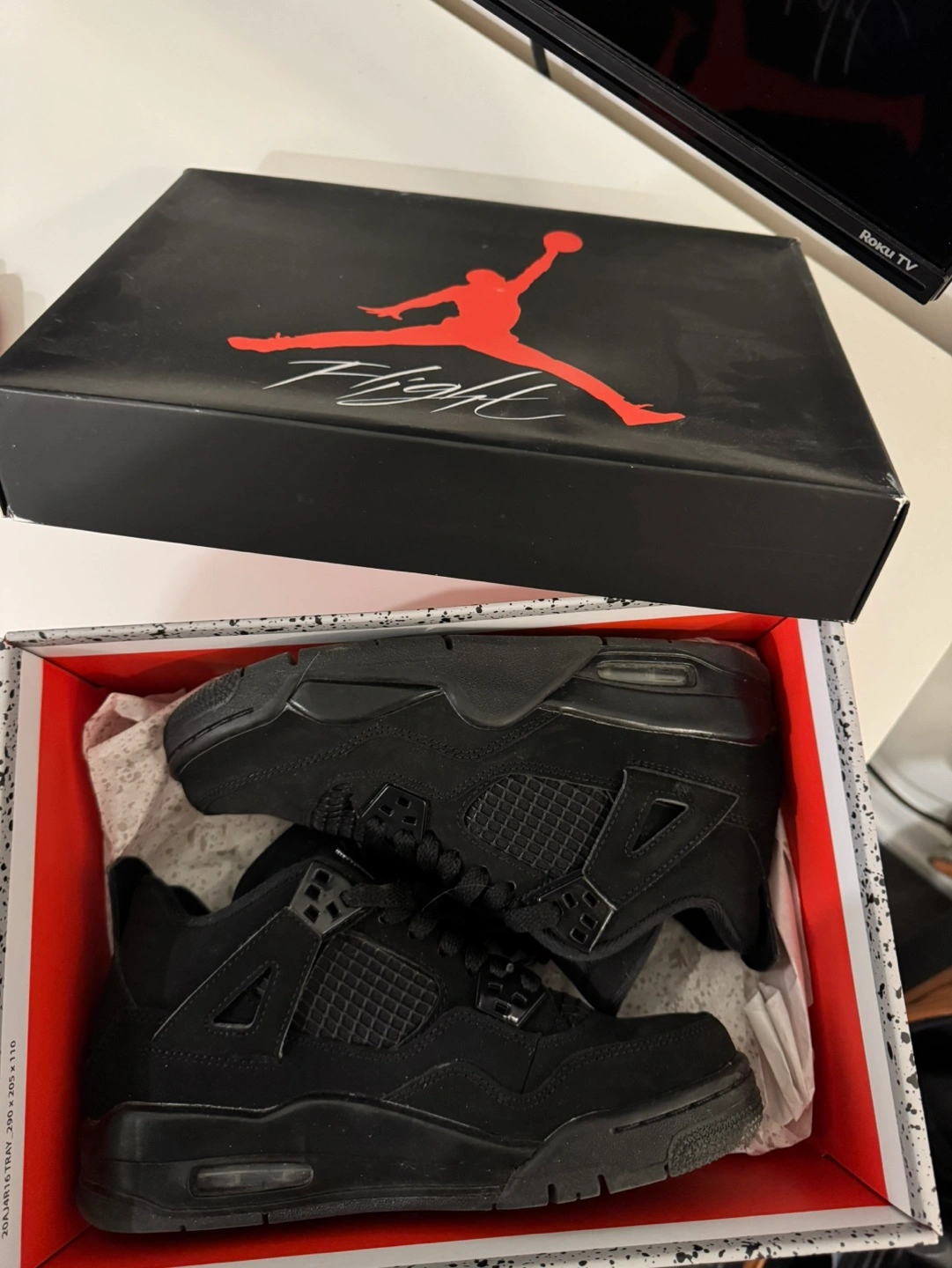 70Used Air Jordan 4 Retro in Black Cat colourway. Size available shown in image. Comes in original box. Pick up only near distillery district