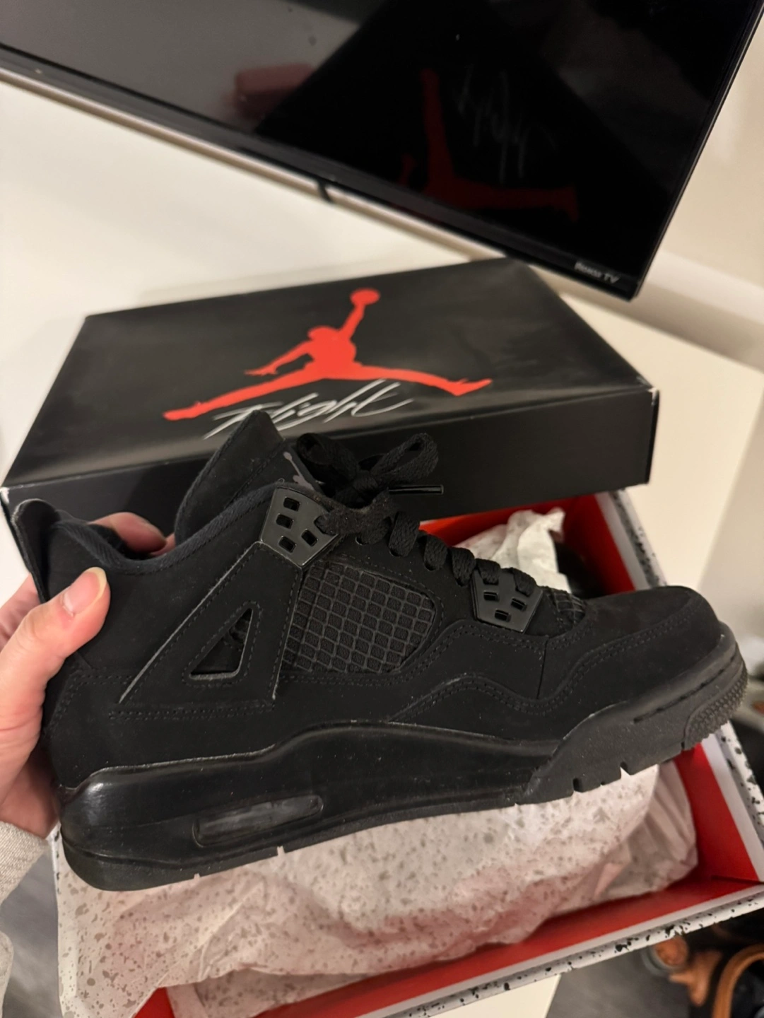 70Used Air Jordan 4 Retro in Black Cat colourway. Size available shown in image. Comes in original box. Pick up only near distillery district