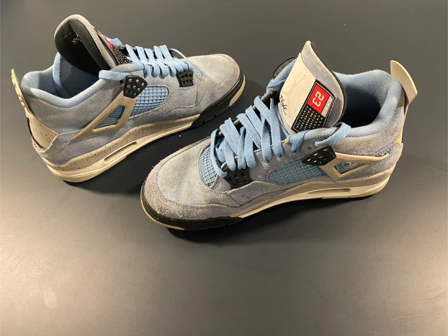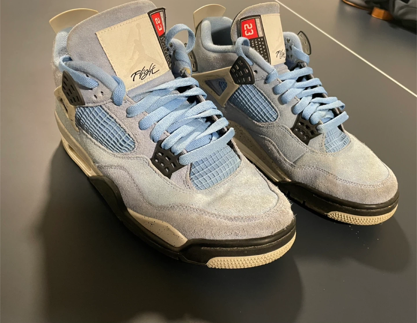 10Selling a pair of Air Jordan 4 Retro in the University Blue colourway. They're in great condition and ready for a new home! Size 10 US