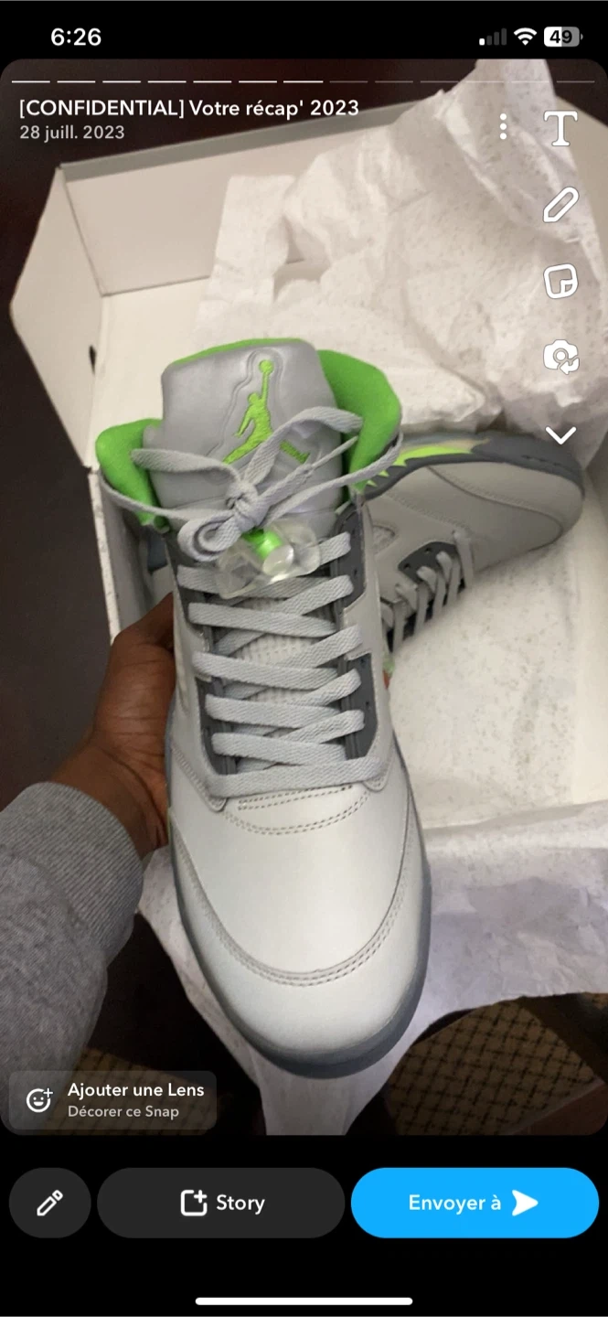 10Jordan 5 green B, (REPS but good quality) size 10’5, got them for $160, and comes with the box and a discount code for the website!