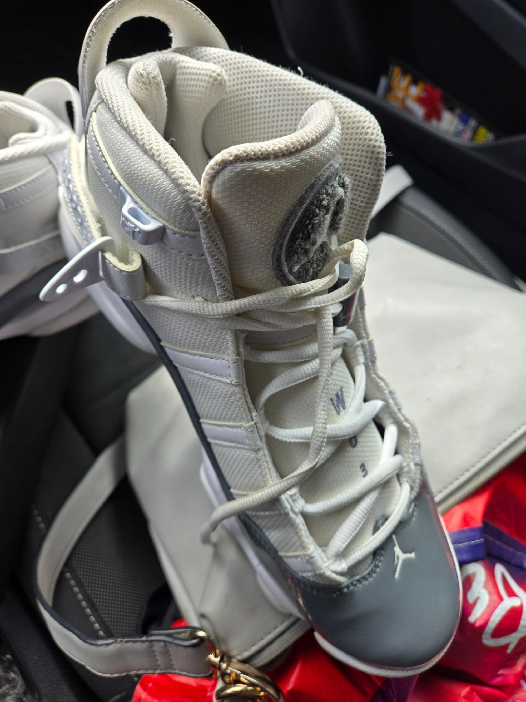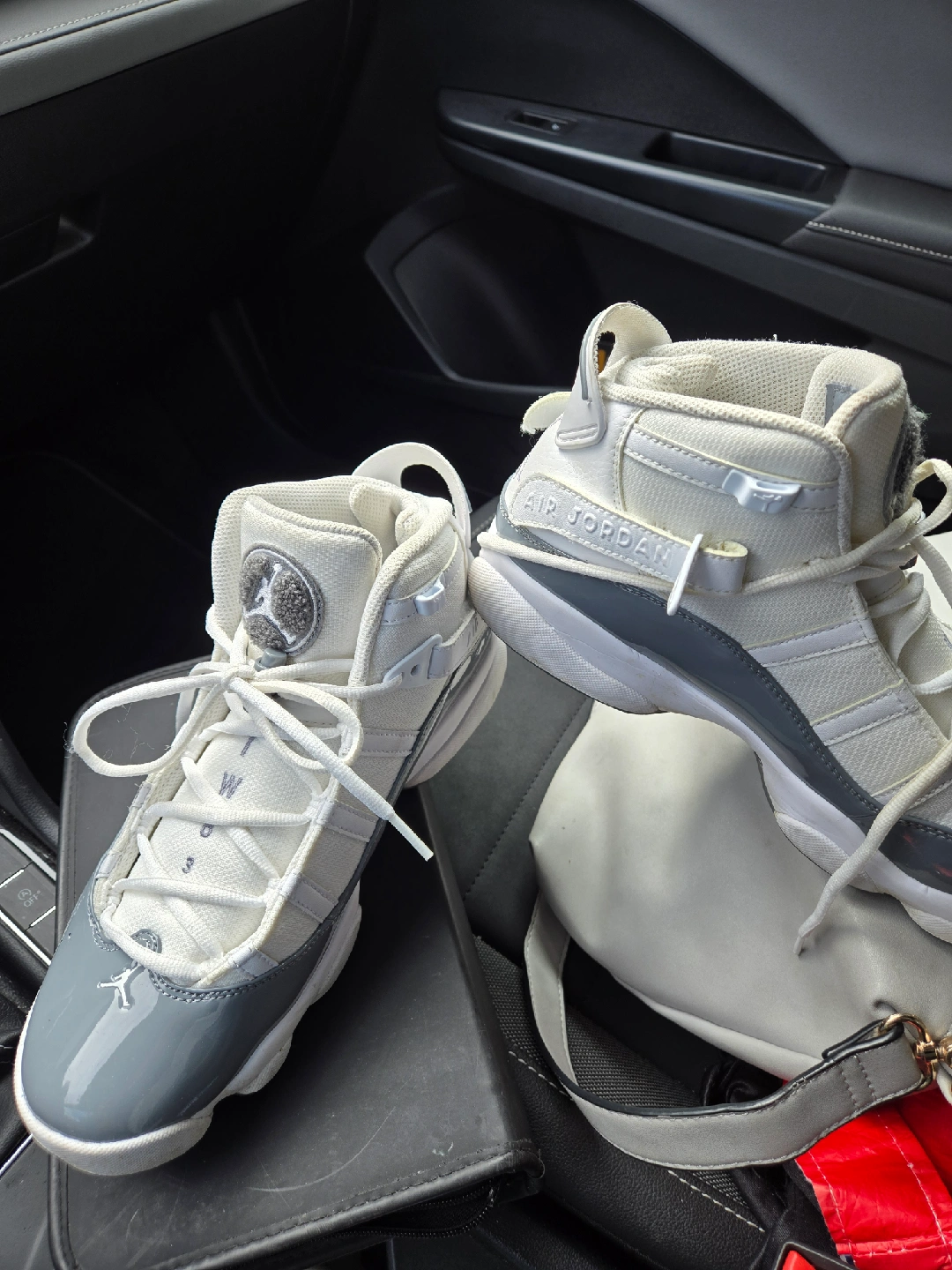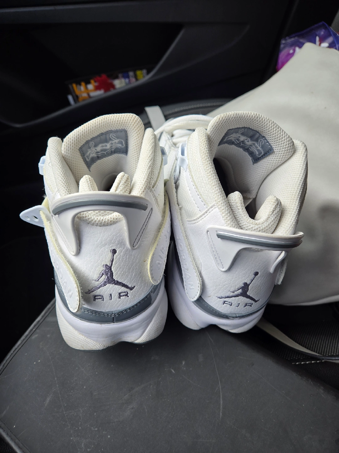 56Selling a pair of Air Jordan 6 Rings in a clean white and grey colourway. These shoes are in good condition and ready for a new home. Perfect for basketball or just casual wear!