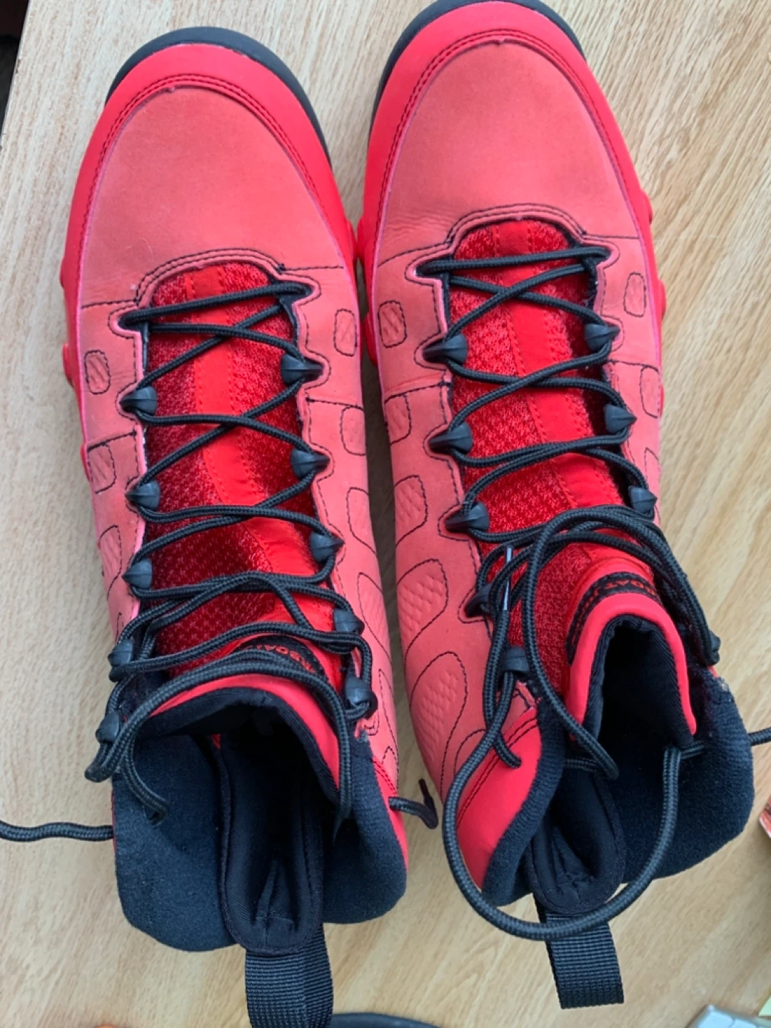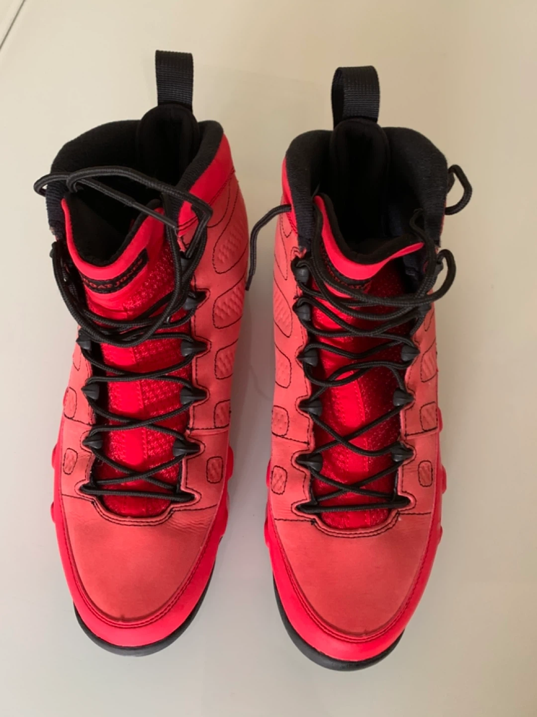 Selling a pair of Air Jordan 9 Retro Motorboat Jones in red. Size 11. Reps. Worn only a couple of times.