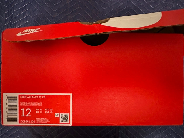Air Max 97 FR - White / Black-Summit White Size 12. Comes with box. Like new. Worn once. Price is firm. Part of a private collection sale. If listing is up, item is available.