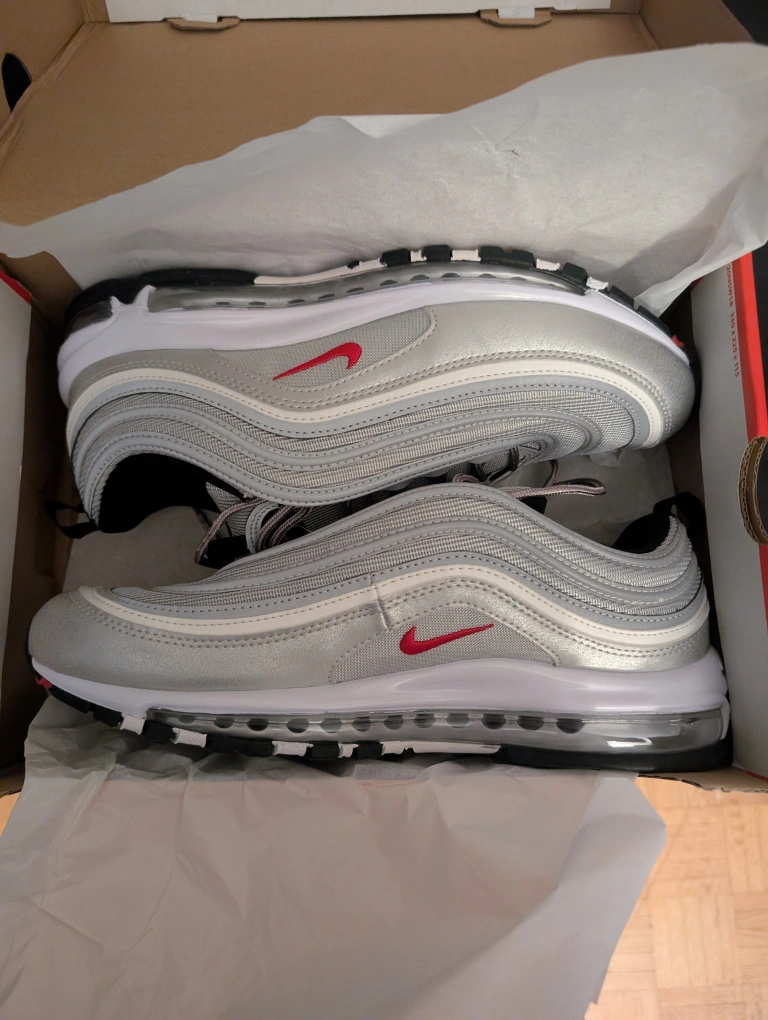 Brand new. never worn. only tried on Air Max 97 silver bullets size 11