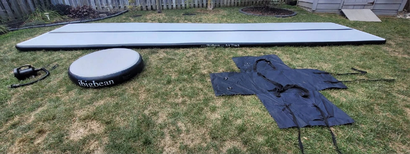 10Air track and air spot with electric pump and repair kit - $1500 Air track 27ft x 5.6ft width x 4in Air spot 100 x 20 cm Arrange pick up Northeast London. This is VERY heavy, you will need more than one person to help carry