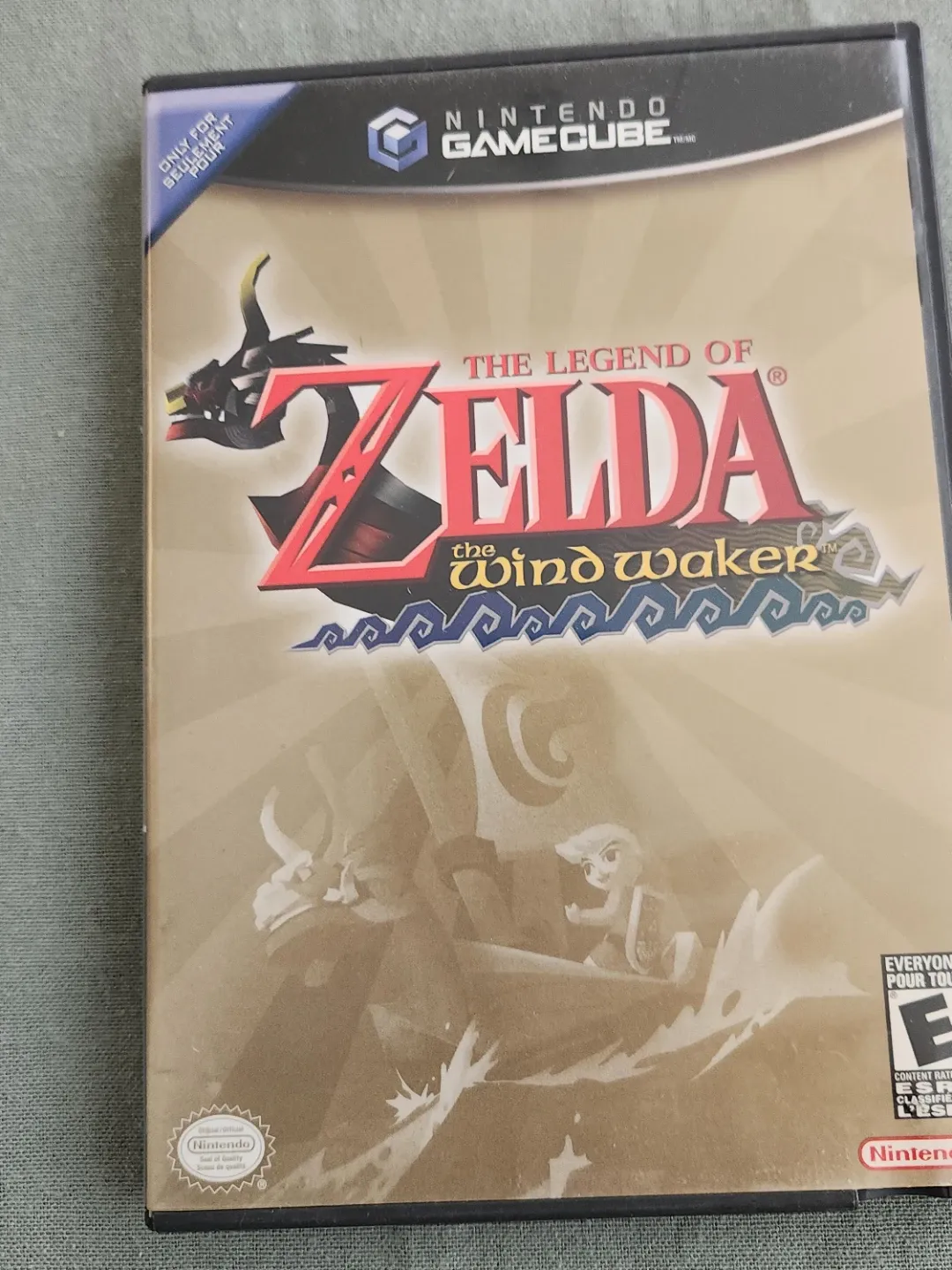 This is The Legend of Zelda: The Wind Waker for the Nintendo GameCube. It's an action-adventure game where players explore a vast ocean. The game includes the original case and disc.