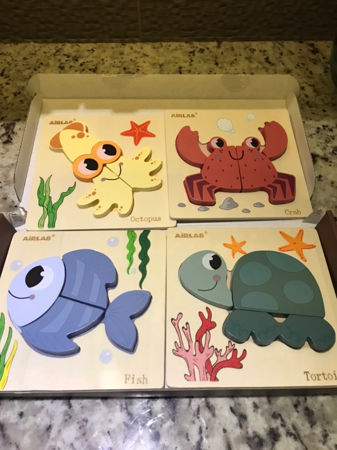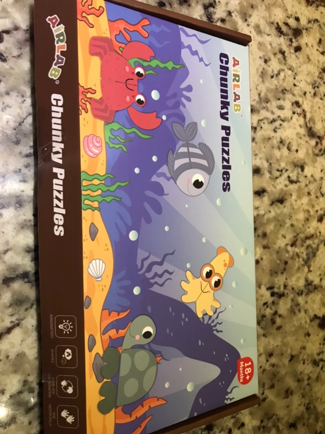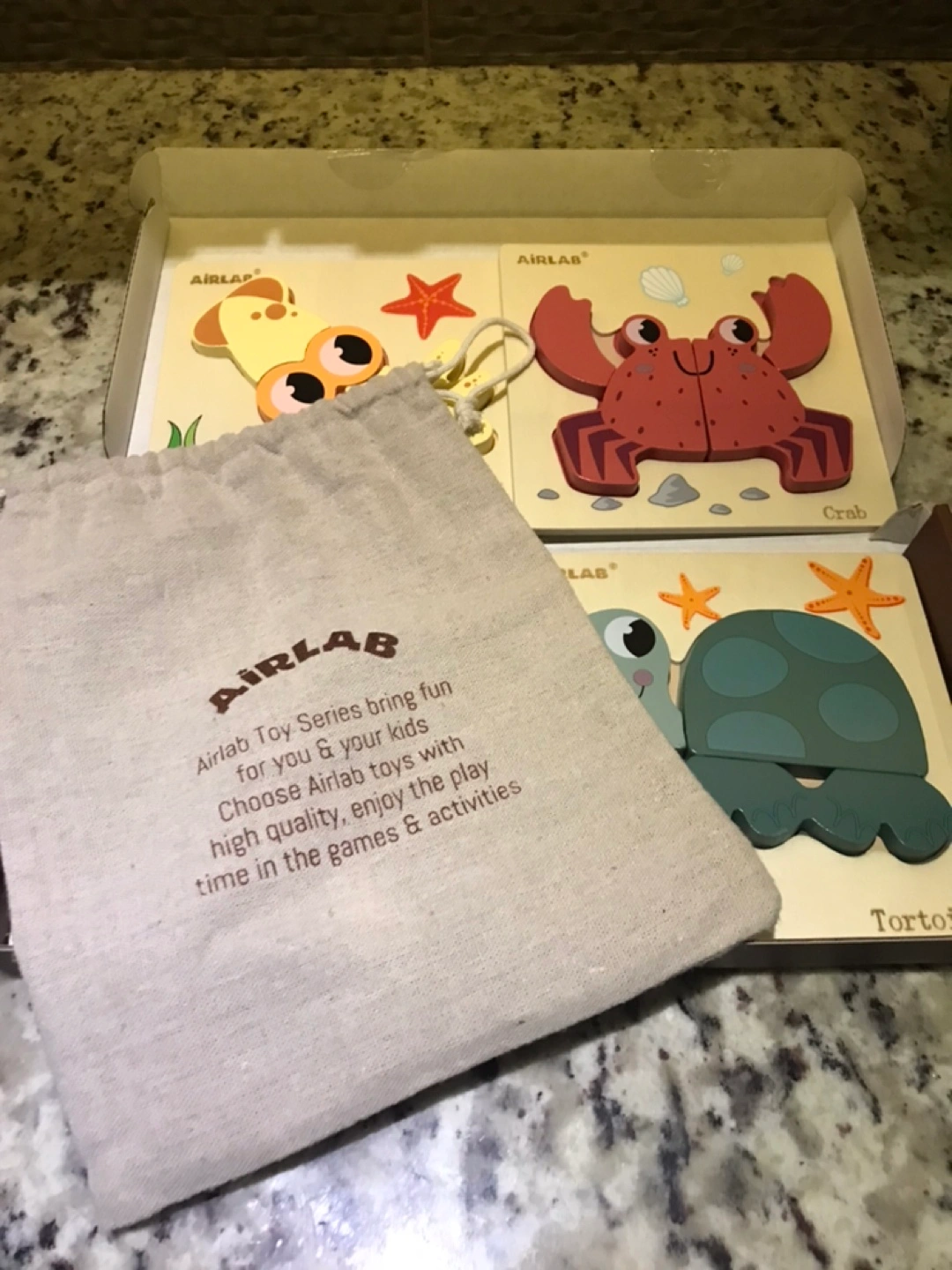 42AIRLAB Chunky Puzzles set! It's great for kids 18+ months and helps with imagination, shapes, colours, motor skills and hand-eye coordination. Comes with a handy storage bag too!