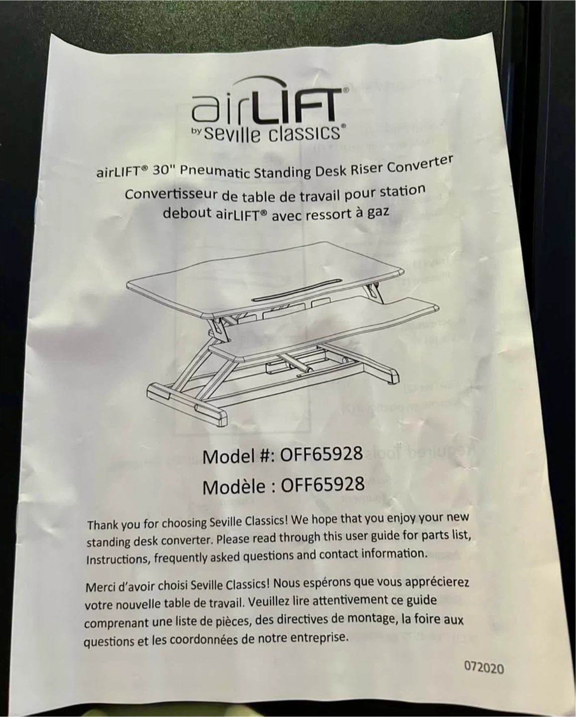 Selling an airLIFT by Seville Classics 30" Pneumatic Standing Desk Riser Converter. It's in great shape and ready to help you work comfortably! Model #: OFF65928