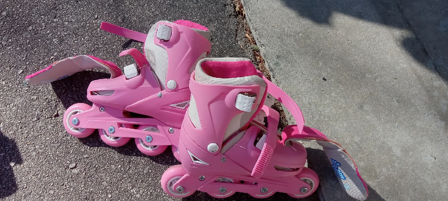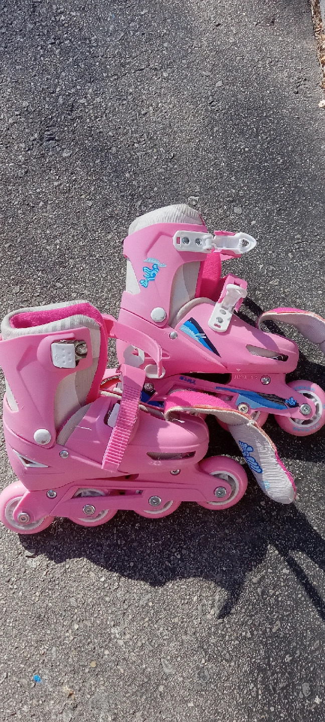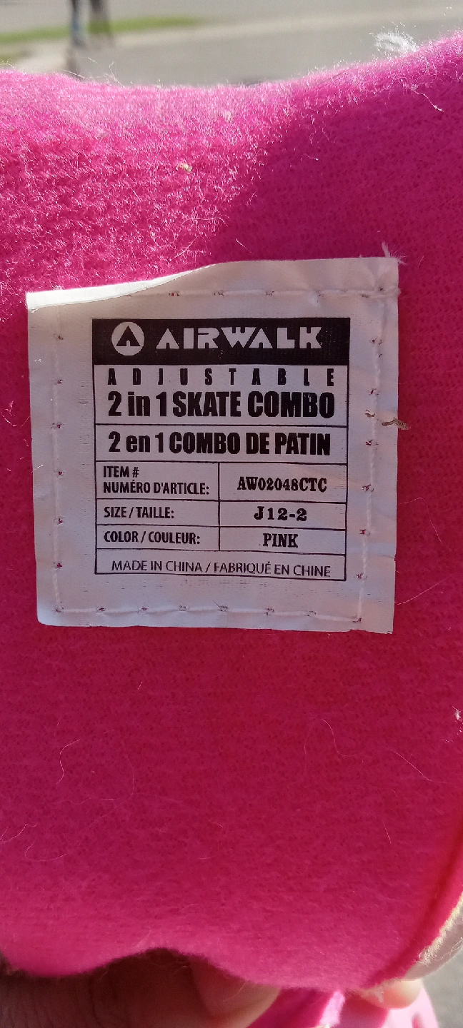 Selling a pair of Airwalk Adjustable 2 in 1 Skate Combo. They are pink and size J12-2. Great for kids learning to skate!