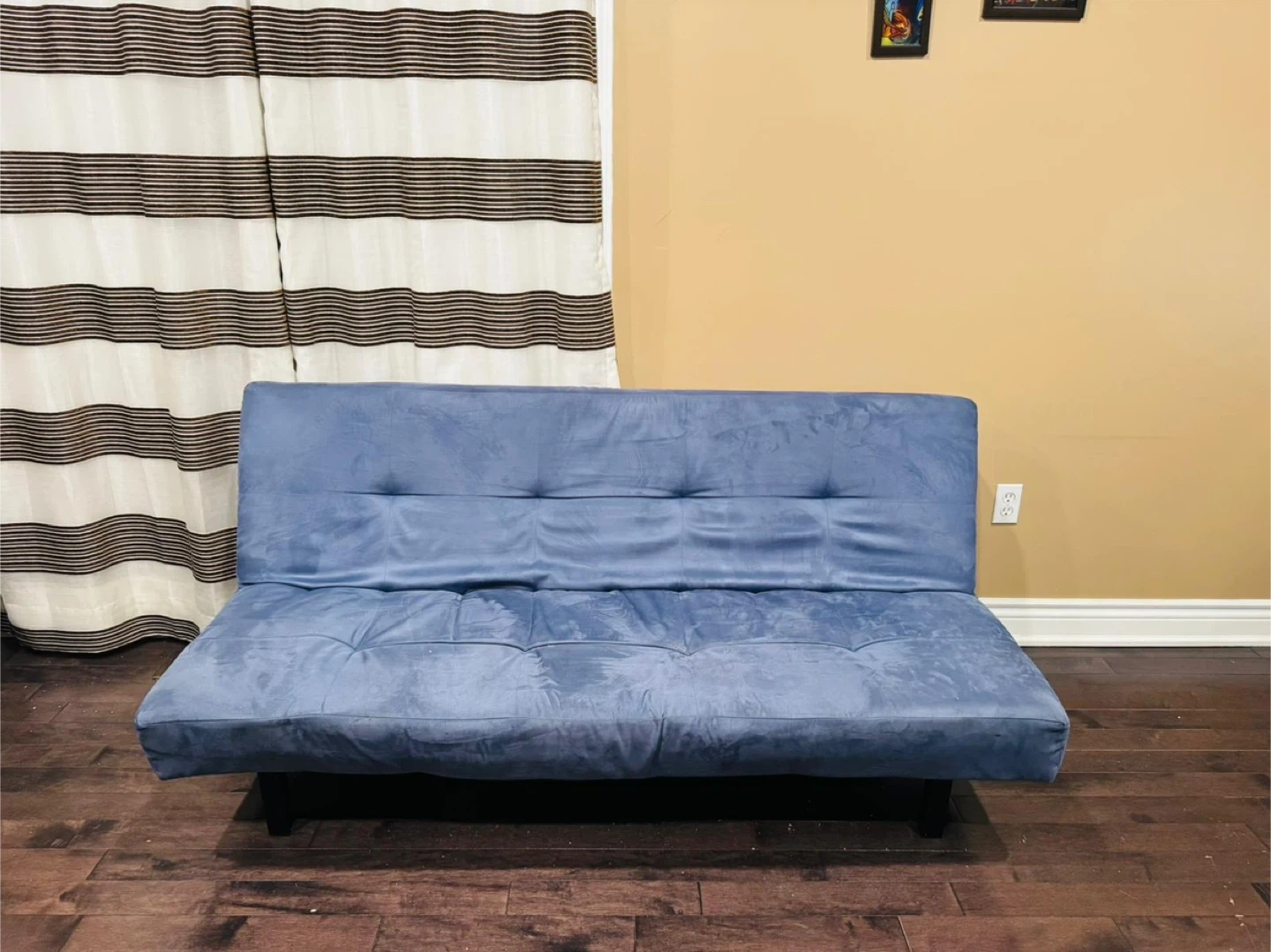 Selling a comfy blue futon! It's in great shape and ready for a new home. Perfect for a living room or spare bedroom.