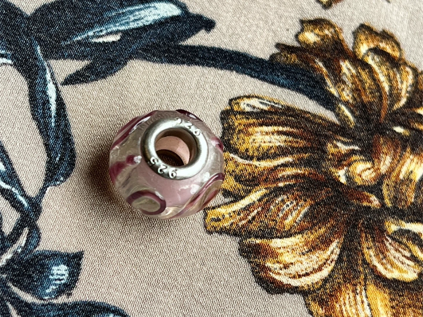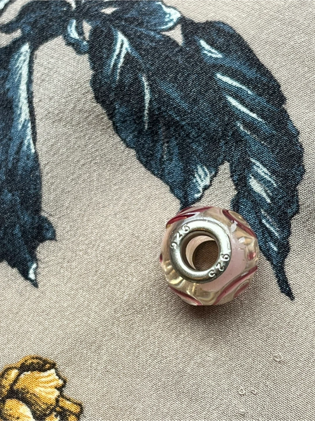 Selling a cute Pandora style pink swirl glass charm! It's made of 925 silver and features a lovely pink swirl design in the glass