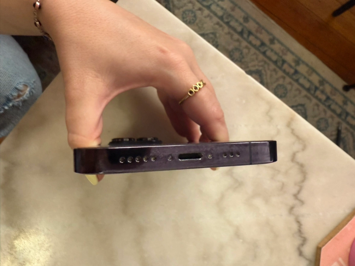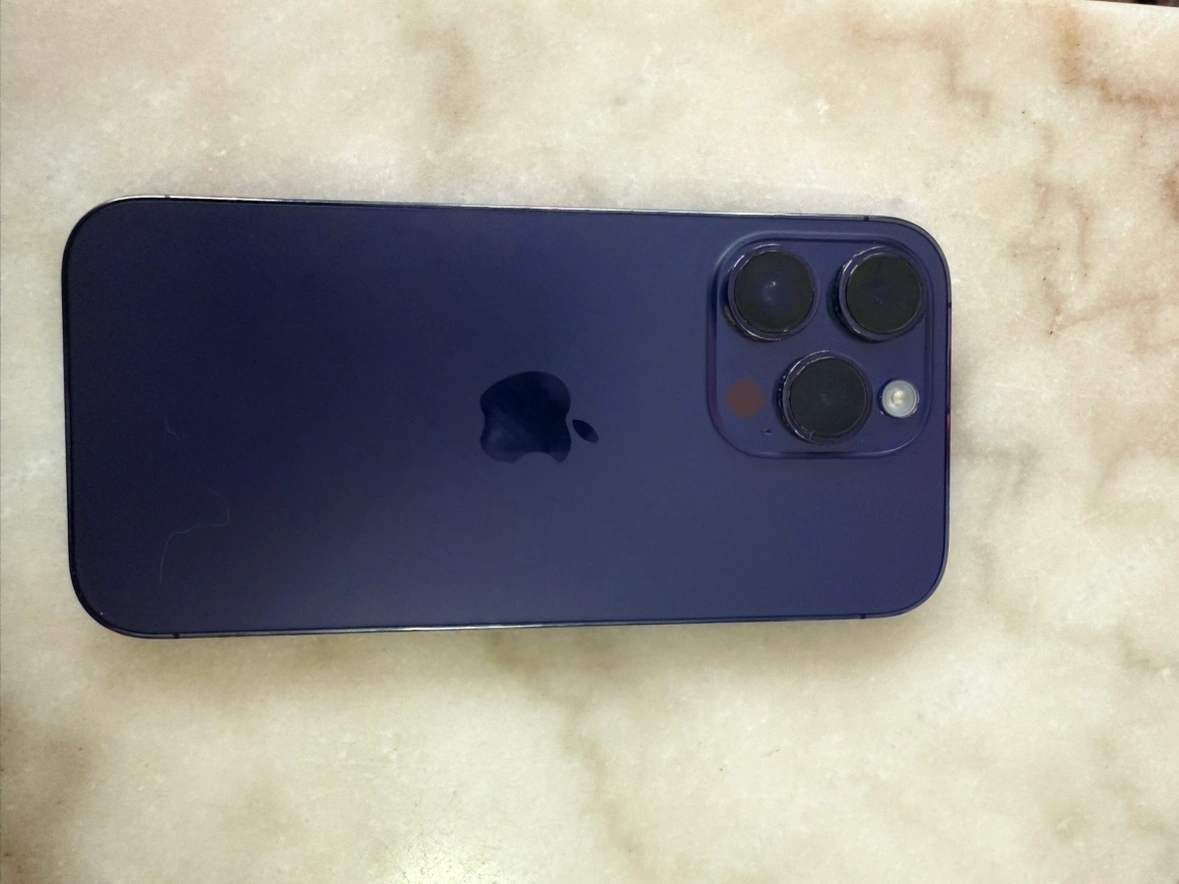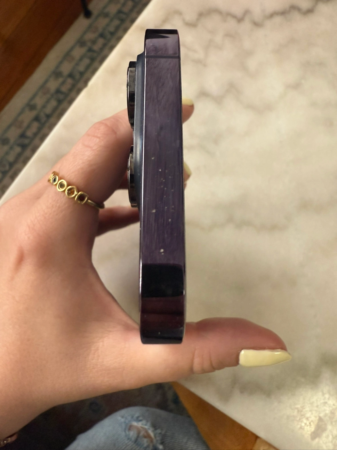 Pre-owned iPhone 14 Pro. Deep purple colour. Minor cosmetic wear, but otherwise it’s pretty pristine. Includes original box and charger. The battery is 91%. I can also throw in a Taylor Swift case if you’d like.