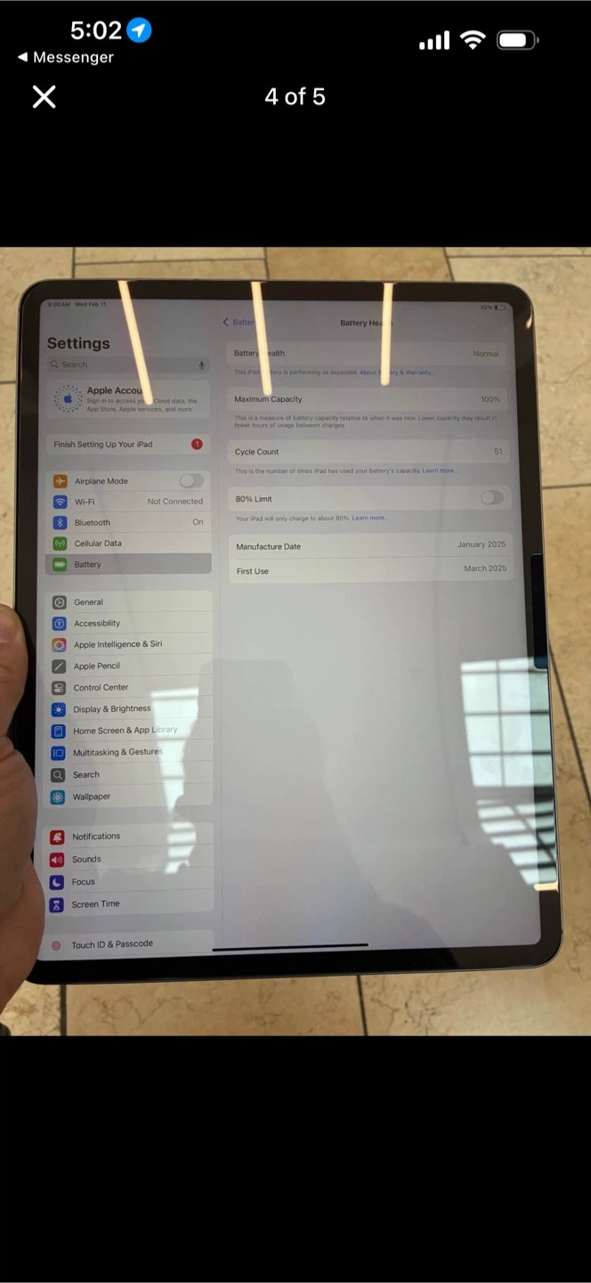 Buy & SellIpad air 13 inch 128gbIpad air 13 inch 128gb$650The battery still at 100% I don’t have the box it comes with the chargerWHERE TO MEETCheck LocationView MapSELLERMariahJamaica100 reviews3 chats·0 favorites·24 viewsSEND CHAT TO SELLERHi Mariah! I’m interested in your listing.Hi Mariah! I’m interested in your listing.Get the Karrot app to chatSign In to chat