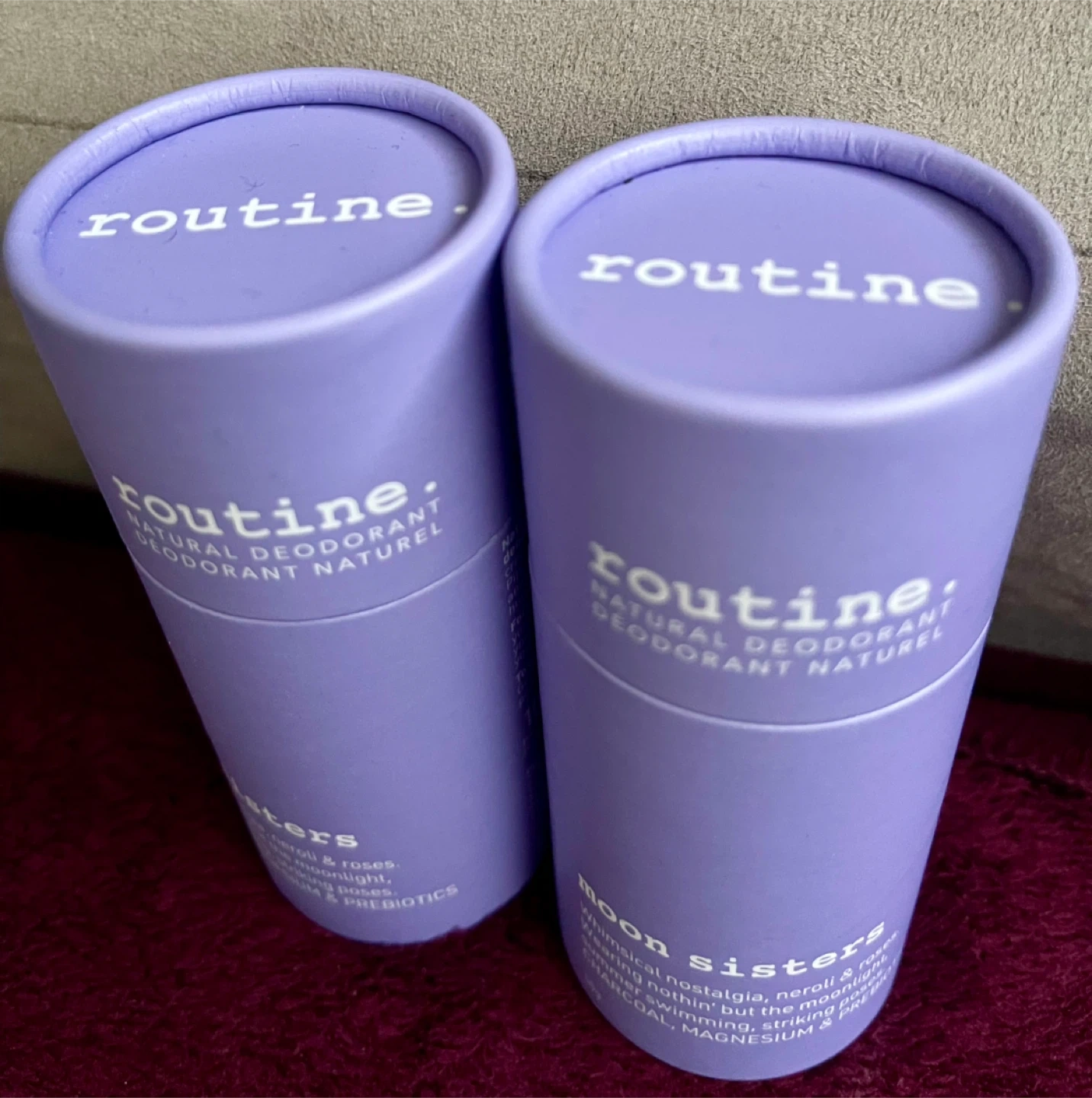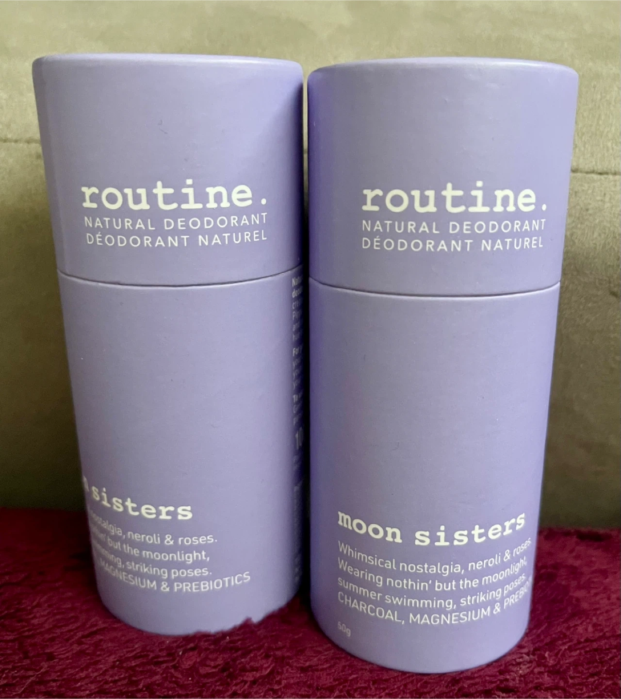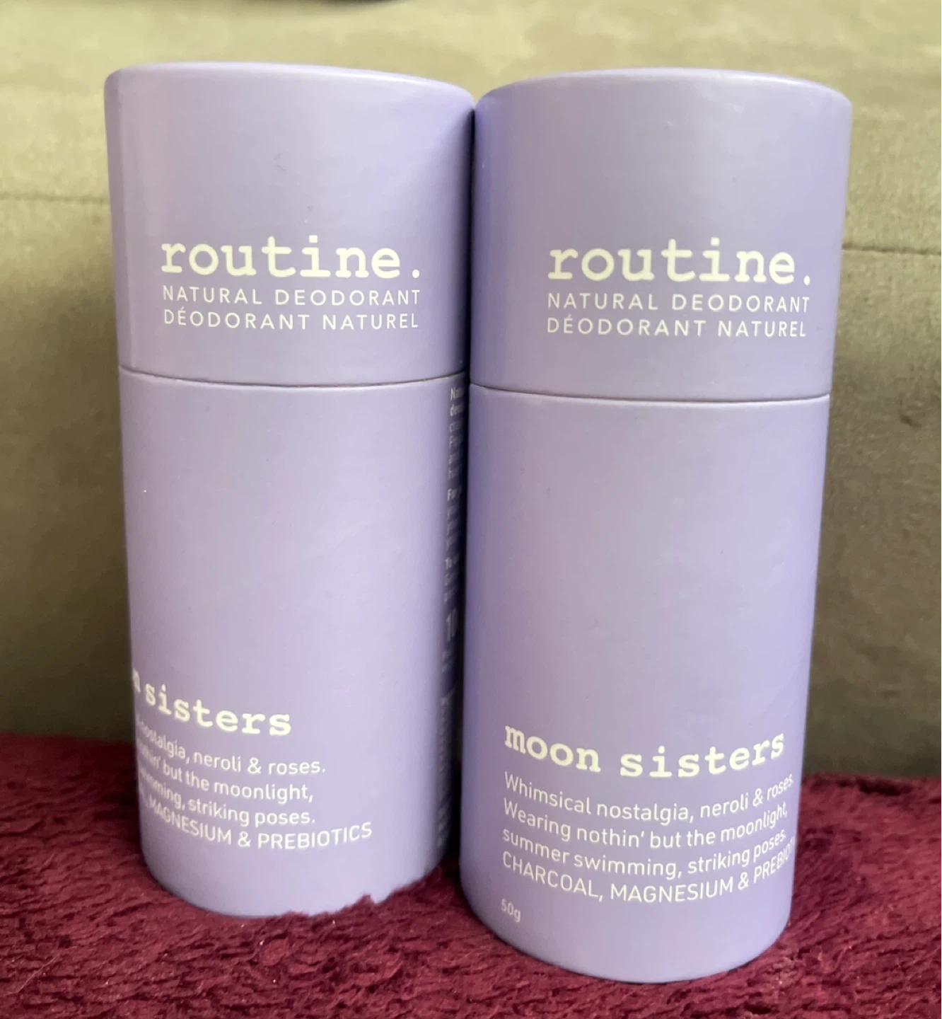 Routine natural deodorant in the 'Moon Sisters' scent. Contains charcoal, magnesium, and prebiotics. Each stick is 50g.