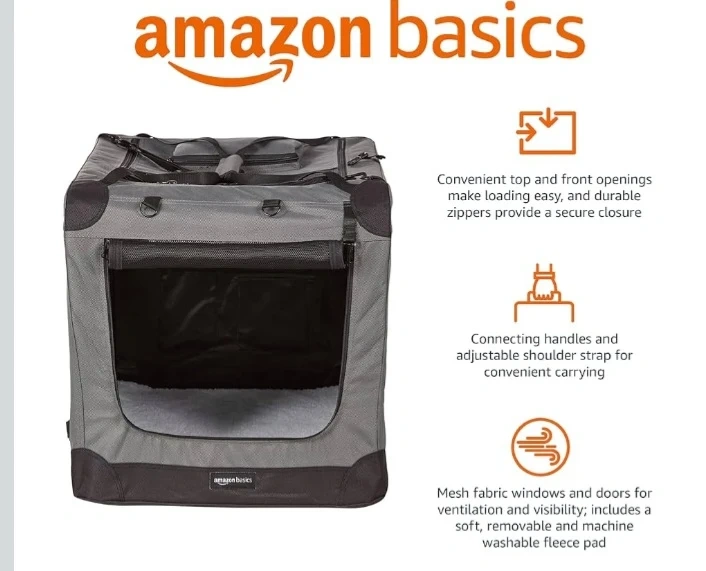 π₯ NEW! Amazon Basics Premium Folding Soft Pet Crate - Grey