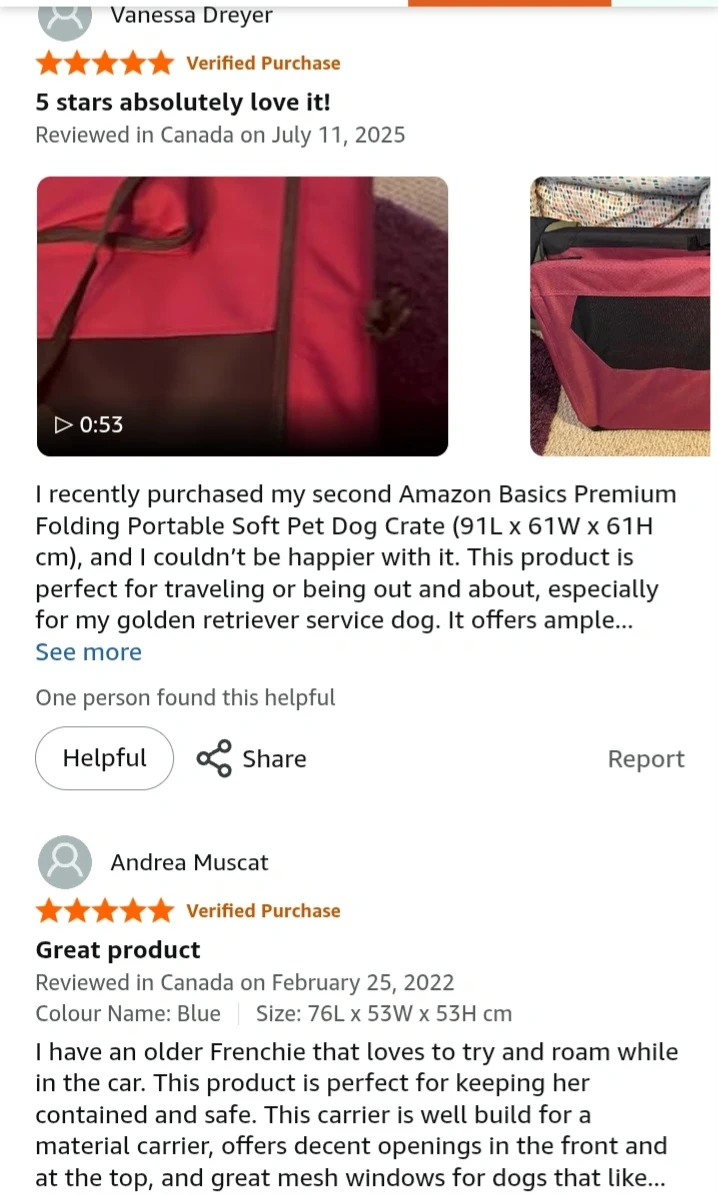 This is an Amazon Basics premium folding portable soft pet crate in grey. It has convenient top and front openings with durable zippers for a secure closure. The crate also features connecting handles and an adjustable shoulder strap for easy carrying.
