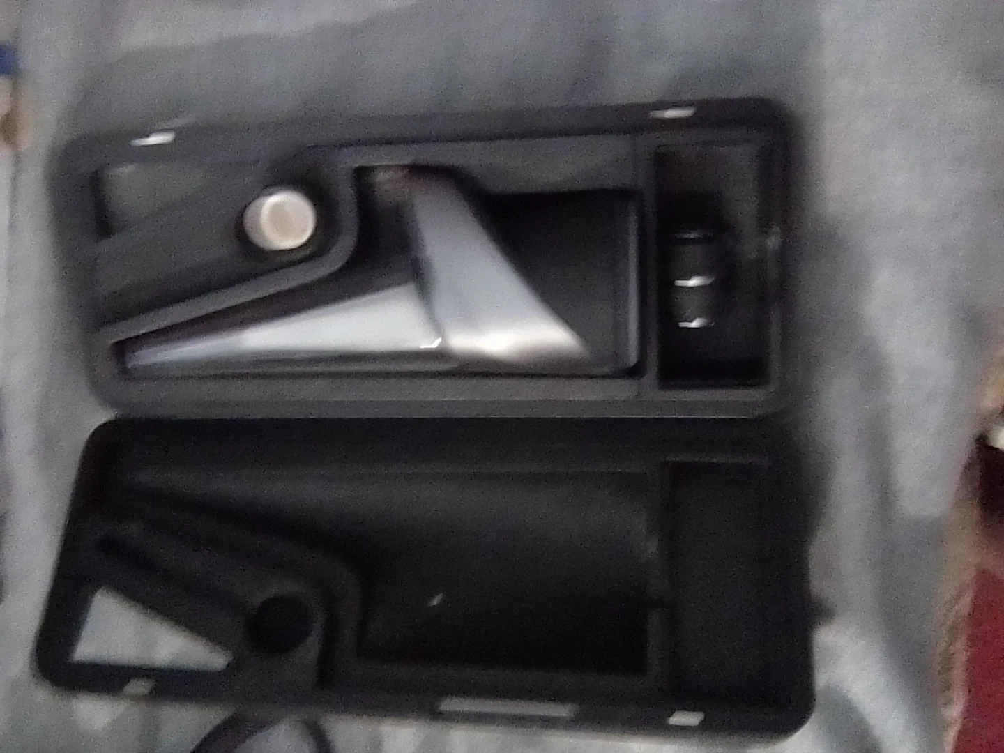 This is a set of replacement interior door handles. It includes the primary handle and a secondary component. These handles are made of durable black plastic and a metallic silver finish. They're designed for interior use.
