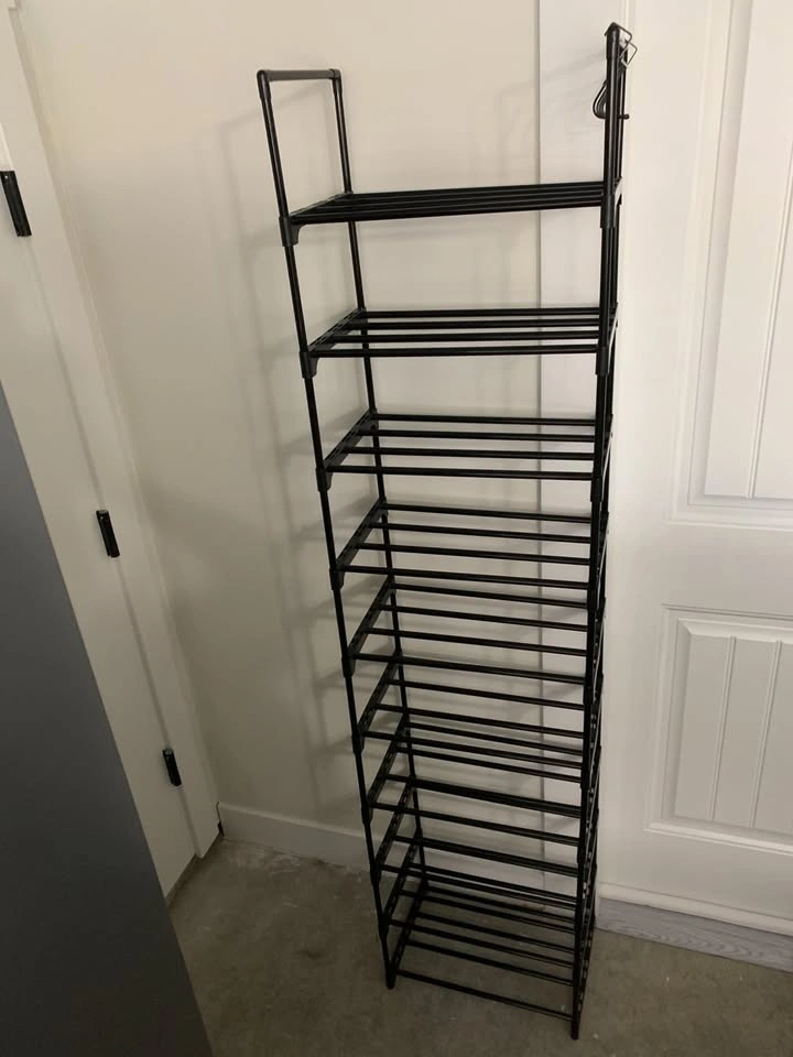 This is a sturdy, large capacity, space-saving shelving unit that can be used as a shoe display rack.