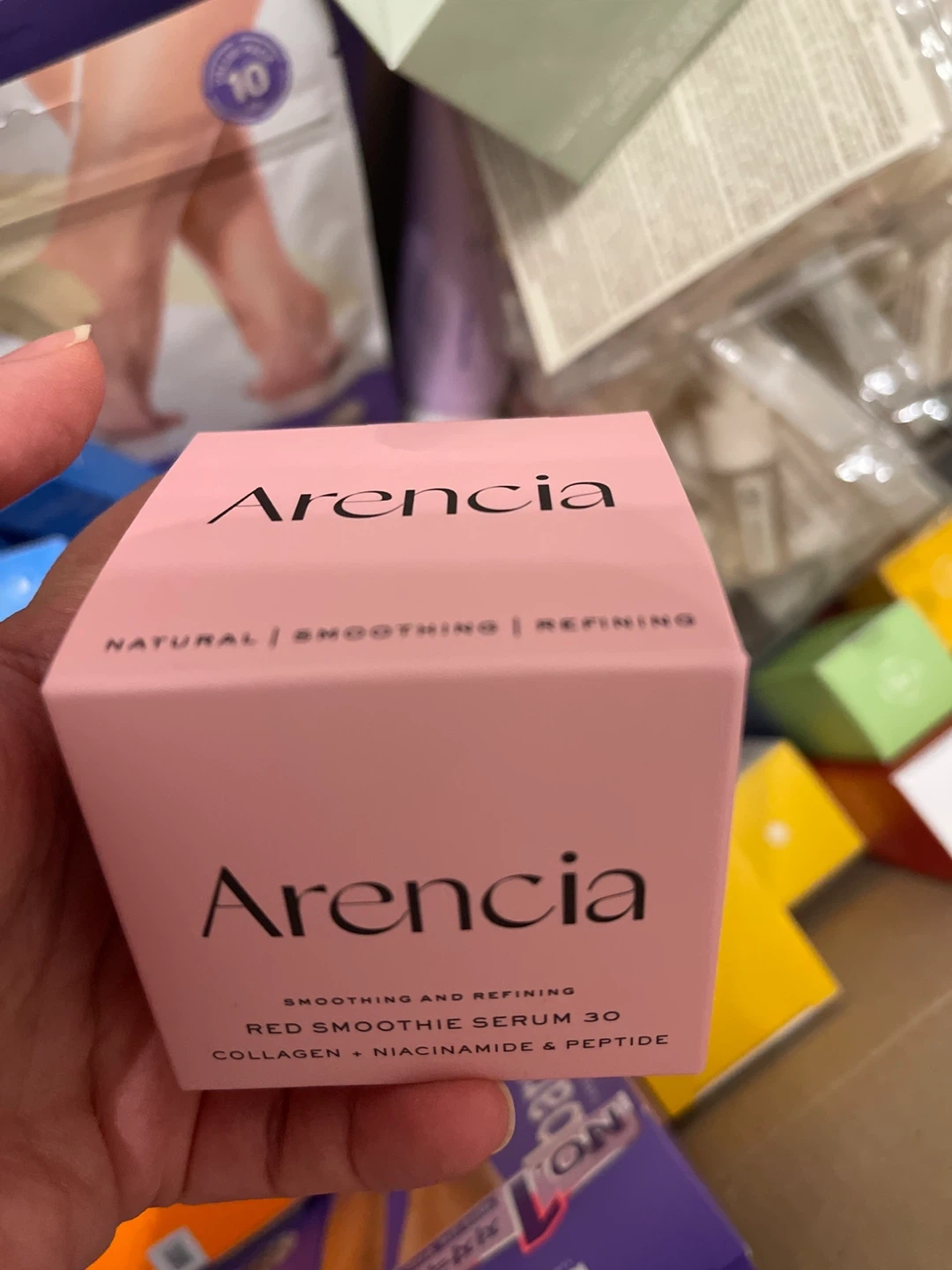 Selling Arencia Red Smoothie Serum 30! It's packed with collagen and plumps and hydrates the skin. This serum is natural, smoothing, and refining, and contains collagen, niacinamide, and peptide. It comes in a 50g / 1.76 oz container