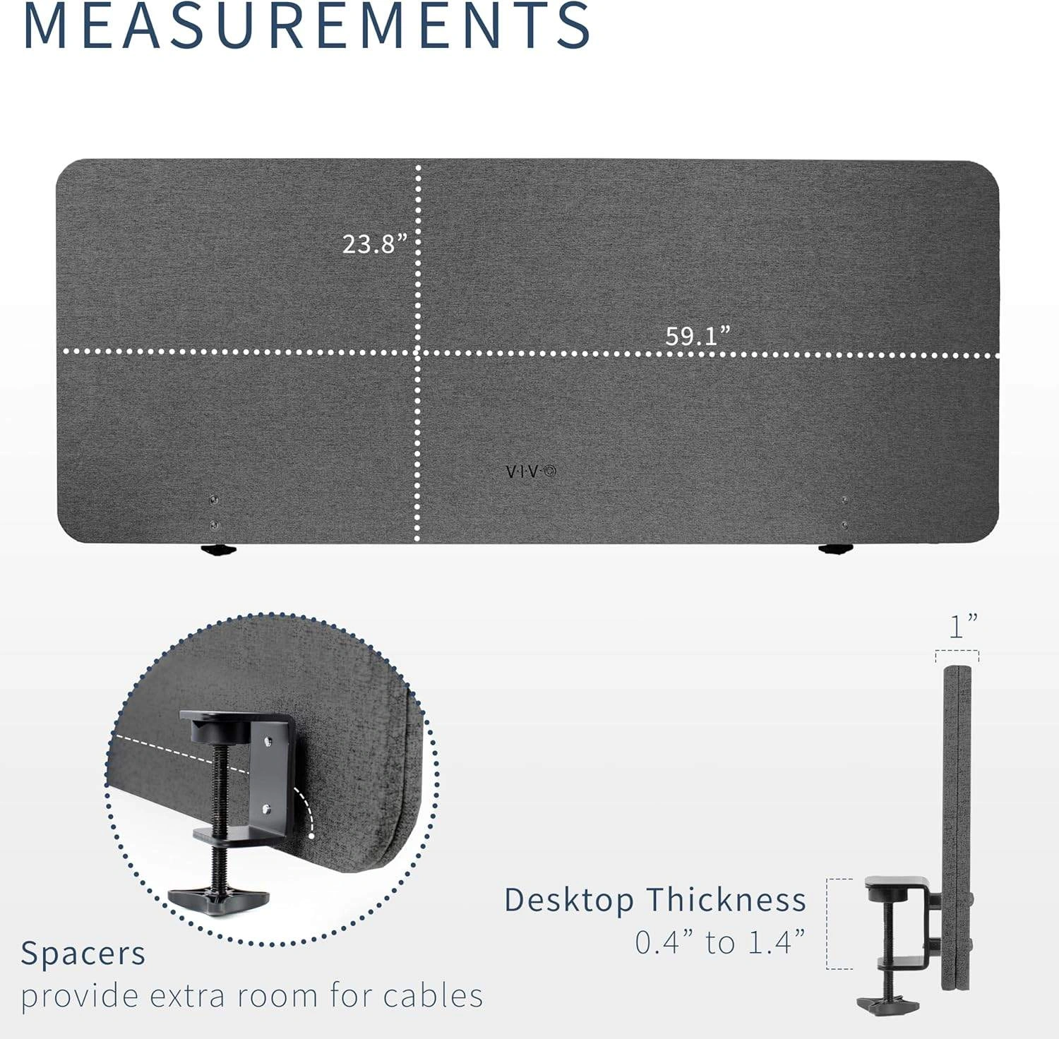 New VIVO Clamp-on/Screw-on 60 x 24 inch Privacy Panel, Sound Absorbing Cubicle Desk Divider, Acoustic Partition, Dark Gray, PP-1-V060D