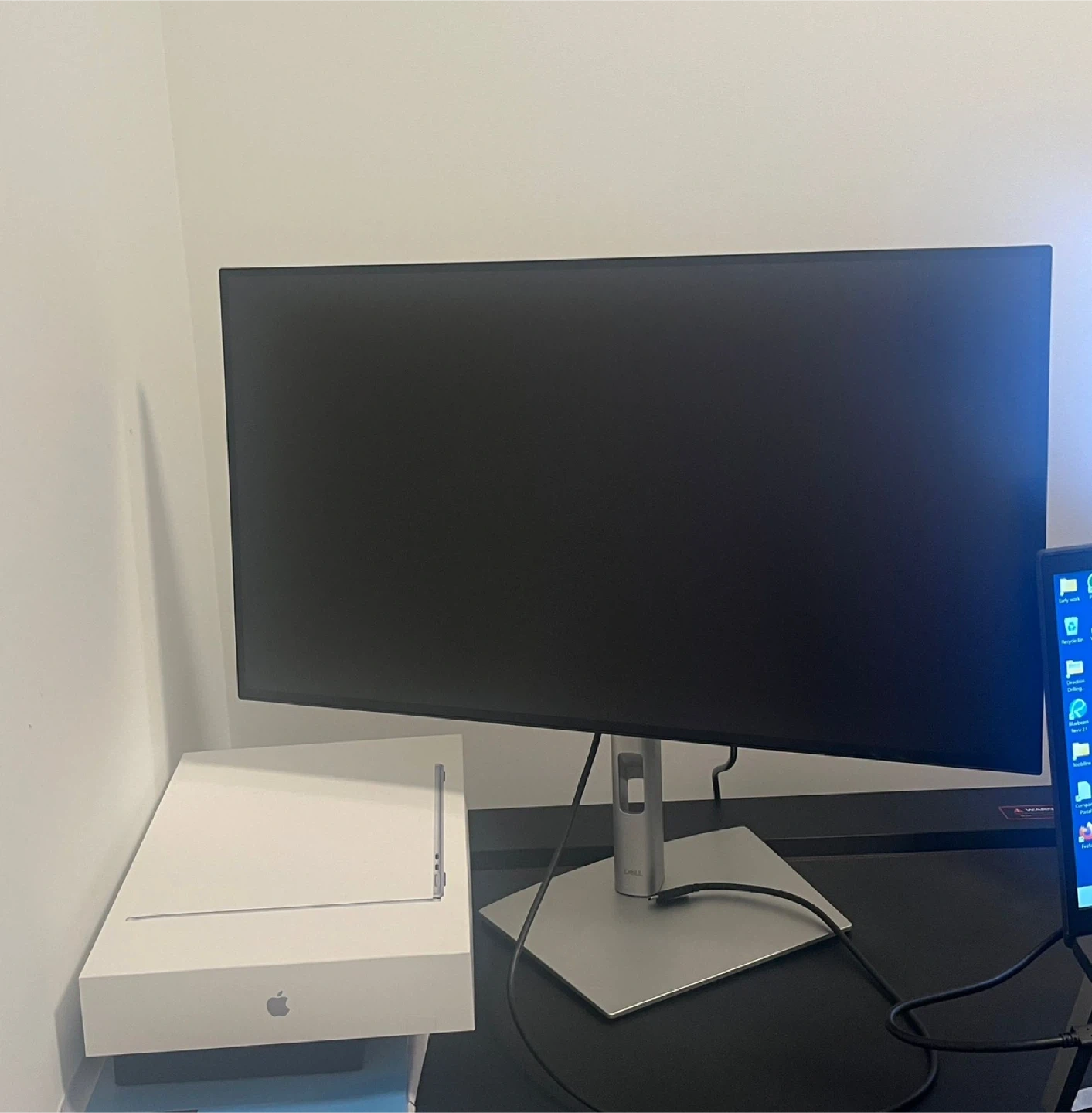 A Dell monitor is available. It features a sleek, modern design. This display is great for everyday tasks.