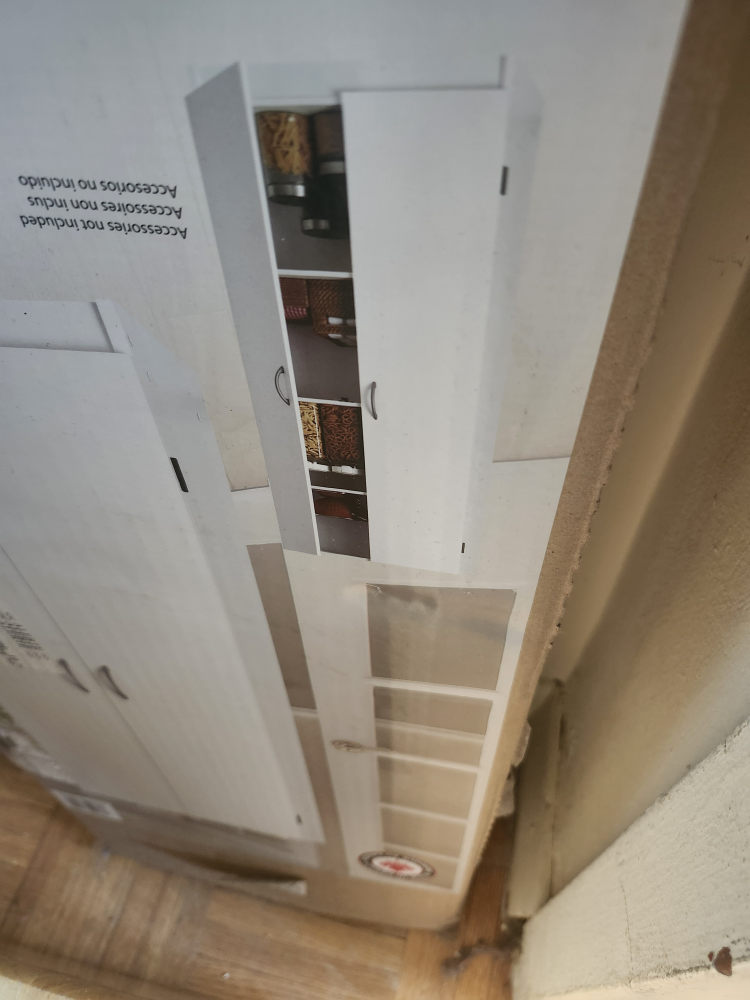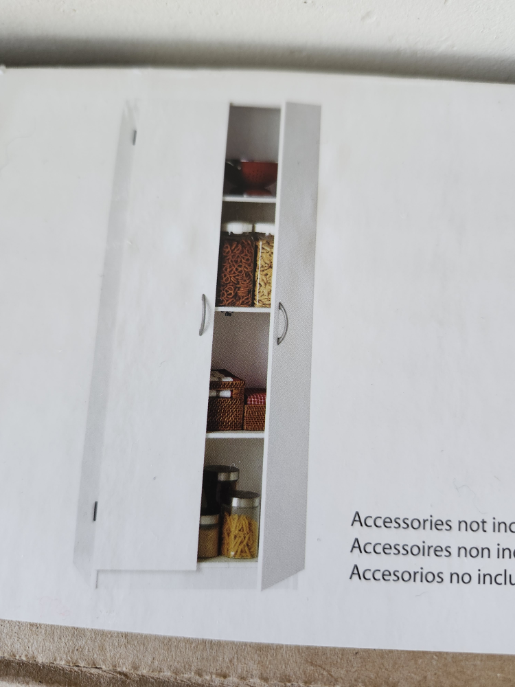 I'm selling a SystemBuild 2-door storage cabinet. It's still in its original box and is easy to assemble. The cabinet has a white finish and includes four shelves that are adjustable. The dimensions are 59-5/8 in (151.5 cm) high, 23-1/2 in (59.9 cm) wide, and 12-1/4 in (31.1 cm) deep