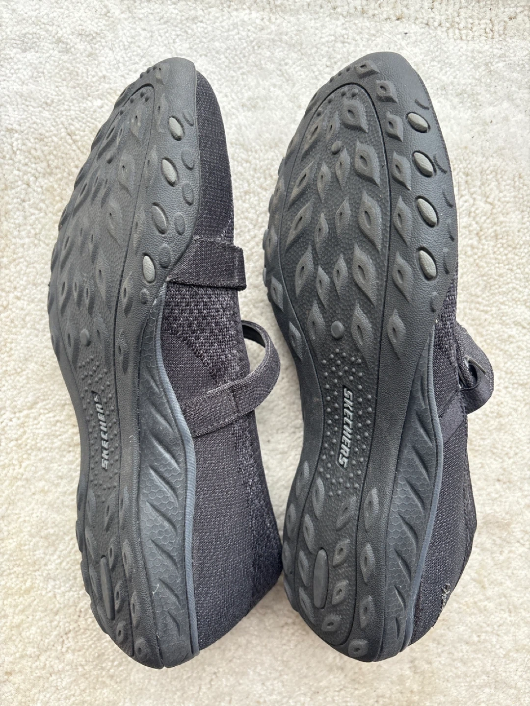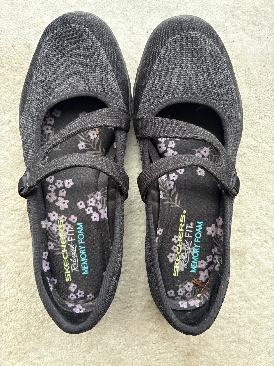 These Skechers Mary Jane shoes offer comfort with memory foam insoles. They're designed with a breathable knit upper and a secure hook-and-loop strap closure. Perfect for everyday wear!