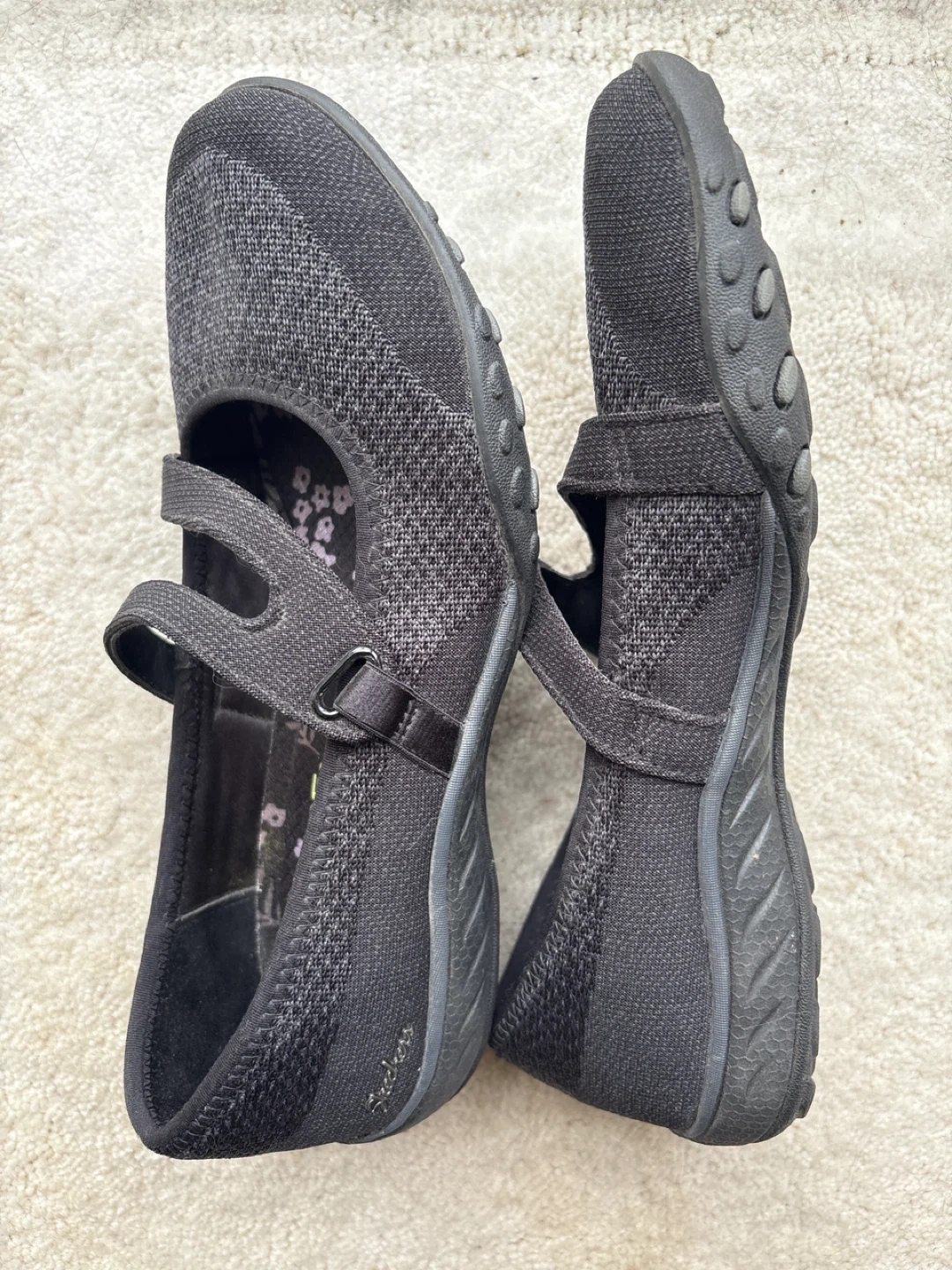These Skechers Mary Jane shoes offer comfort with memory foam insoles. They're designed with a breathable knit upper and a secure hook-and-loop strap closure. Perfect for everyday wear!