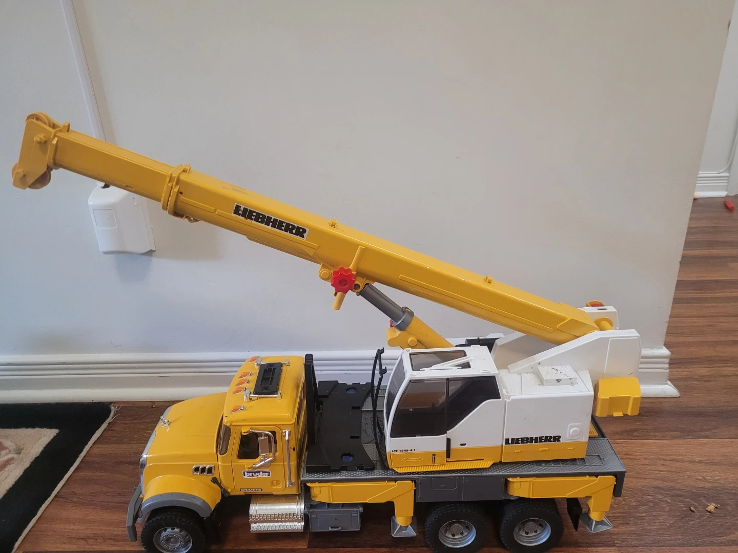 Selling a Liebherr crane truck made by Bruder! It's in great condition and ready for a new adventure. This toy truck is sure to provide hours of fun for your little one. The crane arm extends and retracts, just like the real thing!