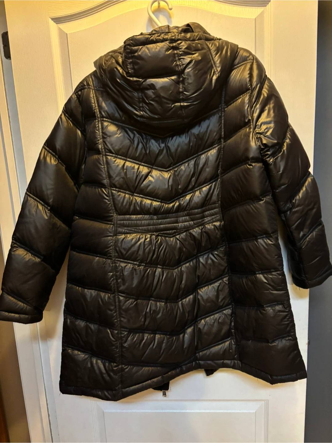 This Calvin Klein puffer coat is packable and lightweight. It's made with premium down for warmth. Features a hood and zippered pockets.